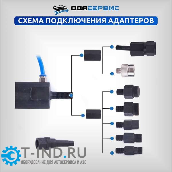Съемник дизельных форсунок, пневматический с комплектом адаптеров ОДА Сервис ODA-3204B