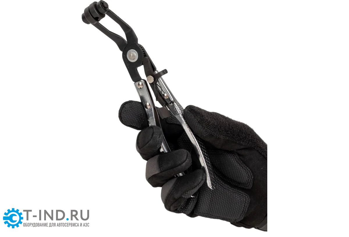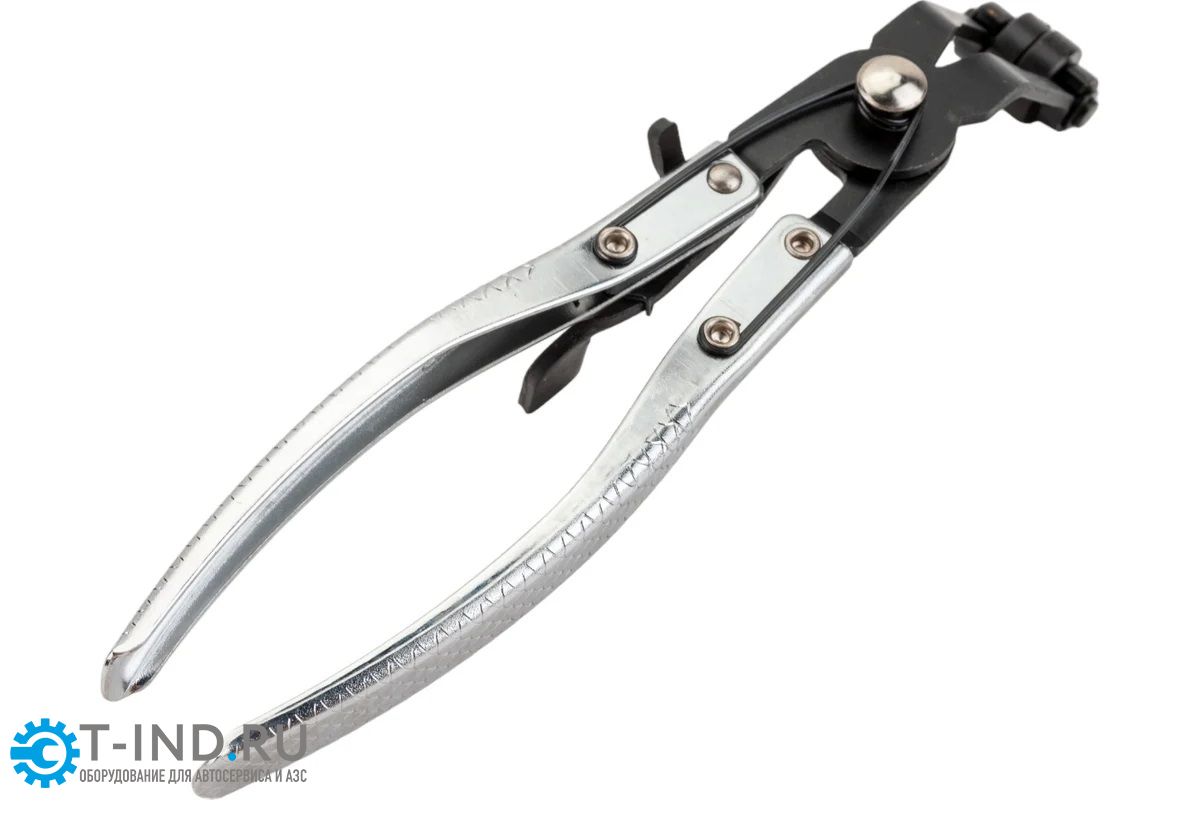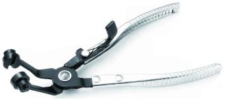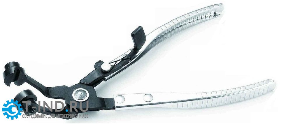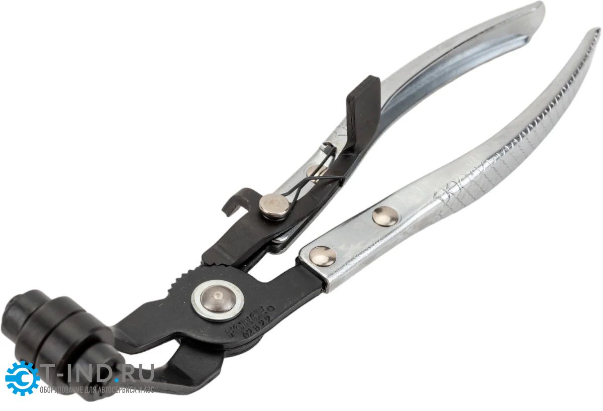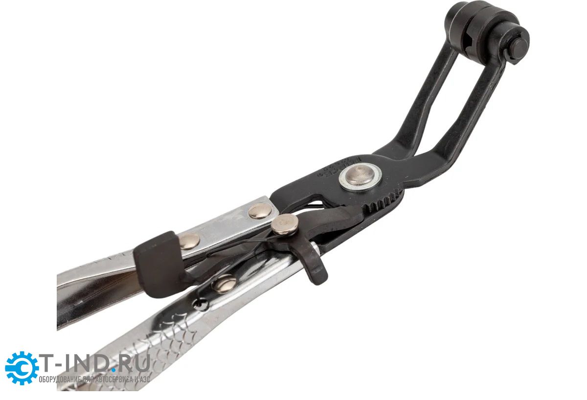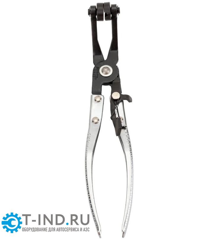 Очень удобные и прочные изогнутые клещи для пружинных хомутов. Губки изогнуты под углом 45° для хомутов в труднодоступных местах. Запирающий механизм, для фиксации хомутов в определённом положении после снятия или перед установкой. Поворотные наконечники губок, удобны для использования в разных положениях.