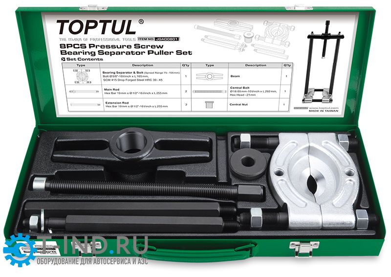 Съемник сепараторного типа 75-105 мм, 8 предметов в метал. кейсеTOPTUL