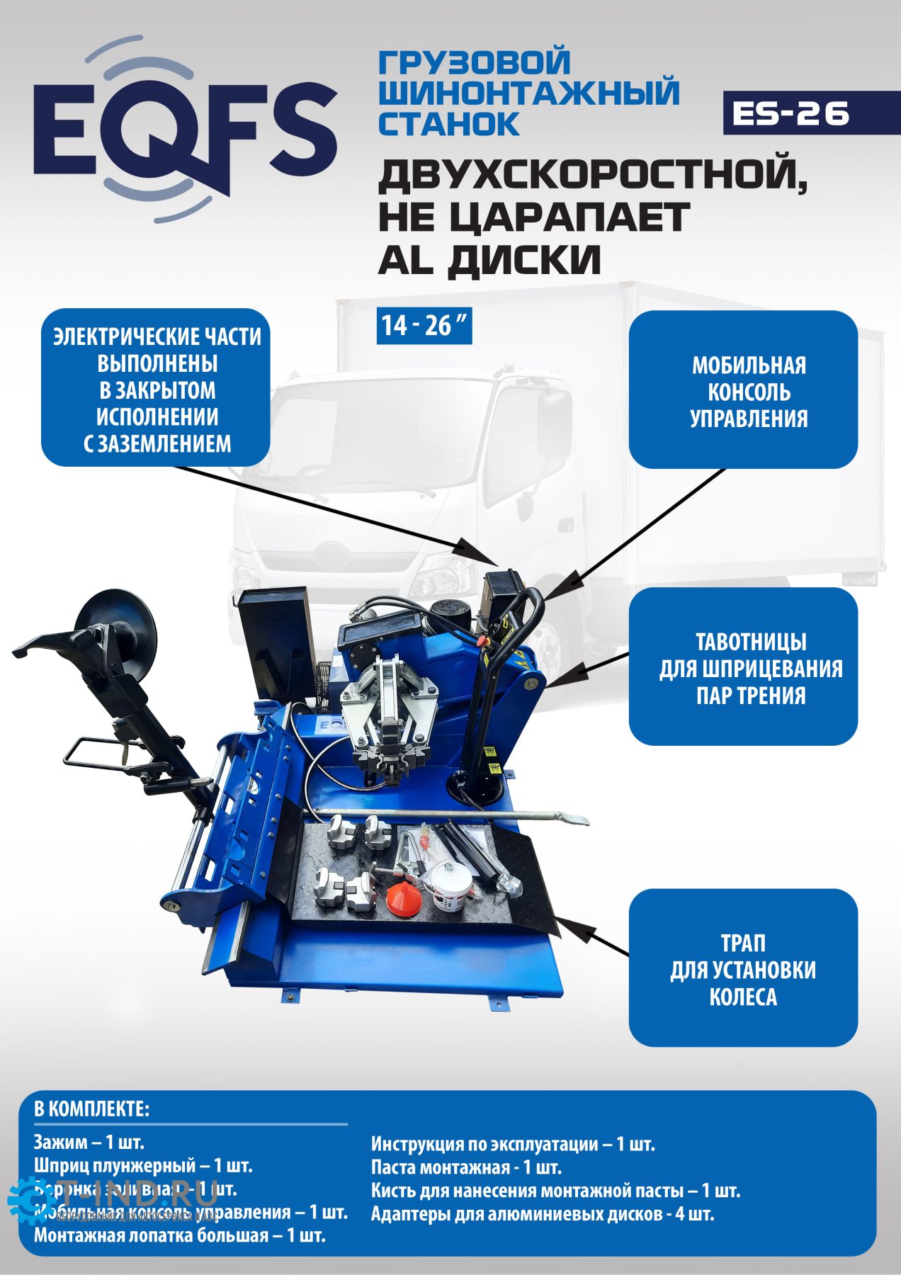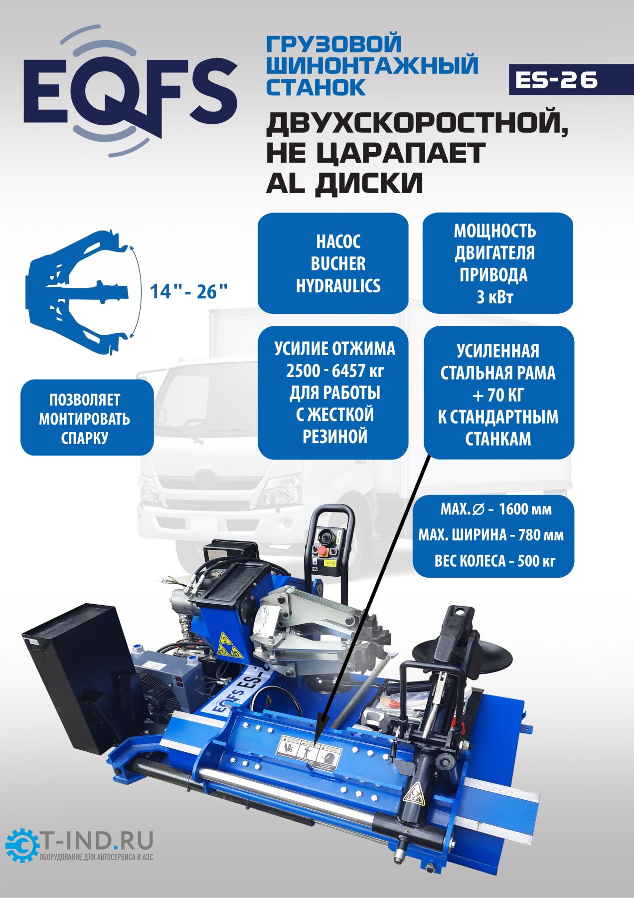 Шиномонтажный станок грузовой EQFS ES-26, автоматический, двухскоростной, 380В