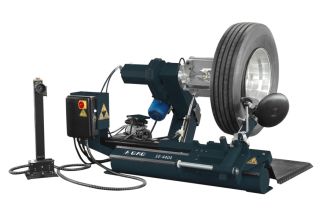 Шиномонтажный электрогидравлический станок для колес грузовых автомобилей и автобусов с камерными или бескамерными шинами. Надежное самоцентрирующееся гидравлическое 4-х кулачковое устройство зажима колеса с возможностью вращения по часовой стрелке и против часовой стрелки.