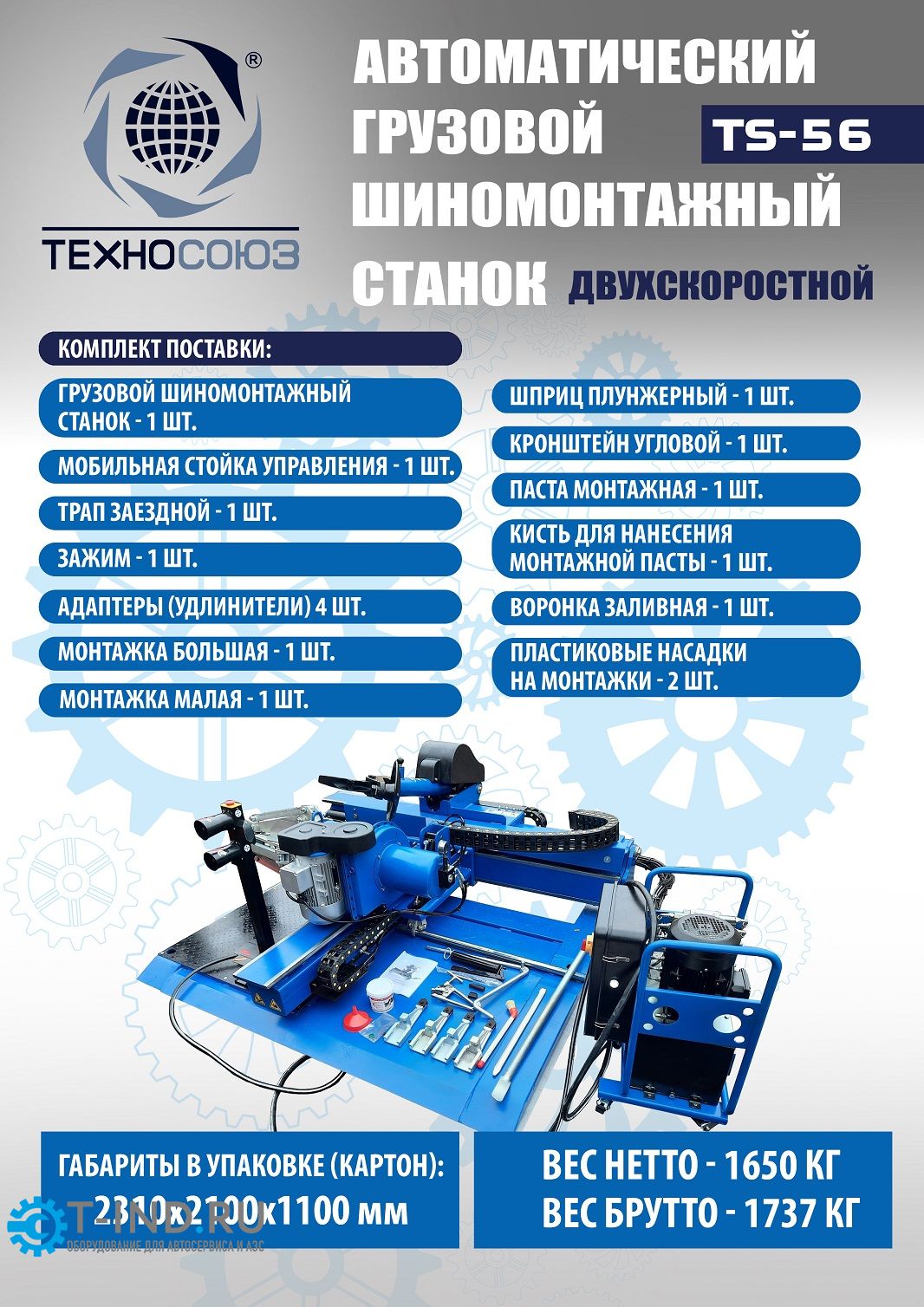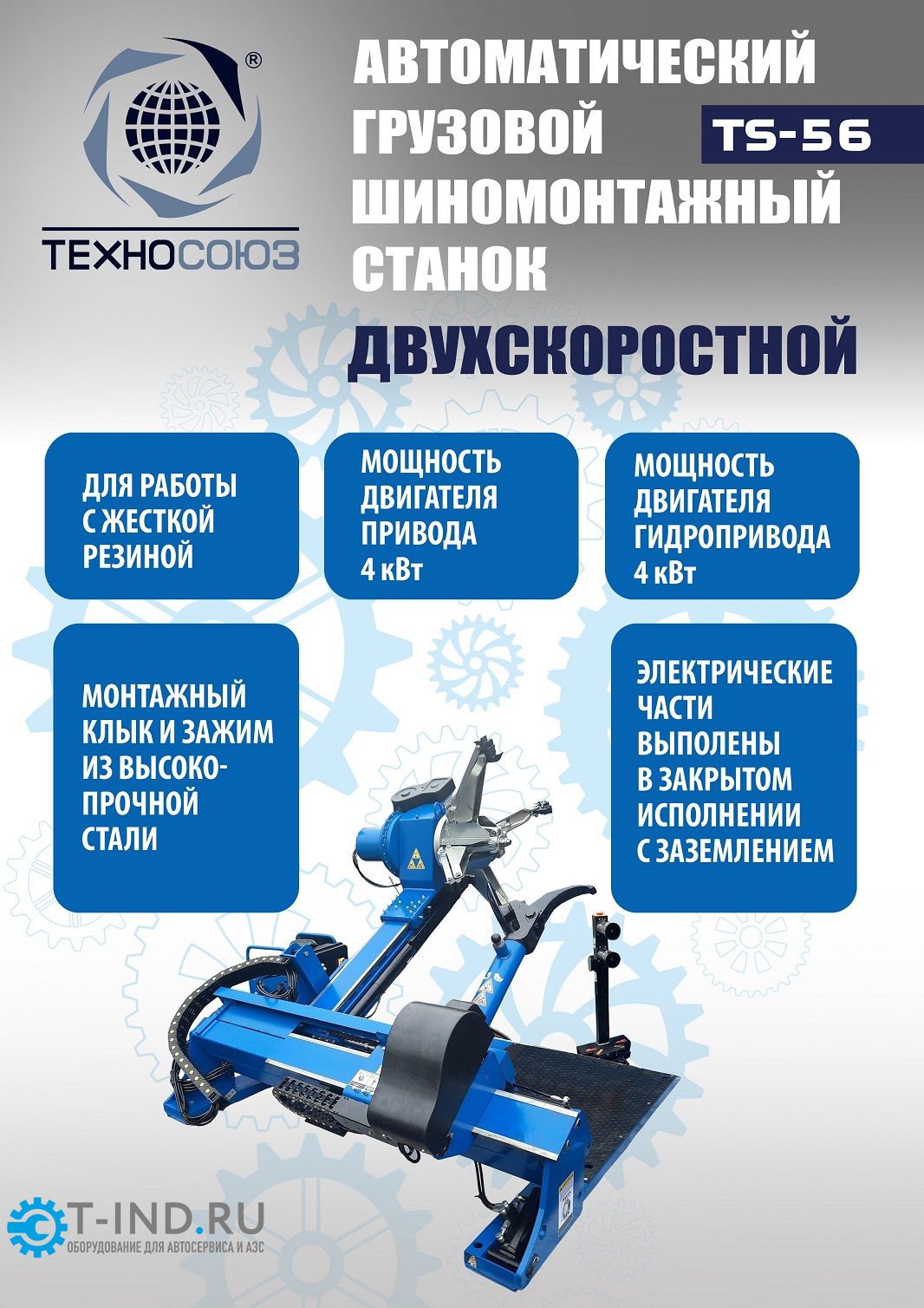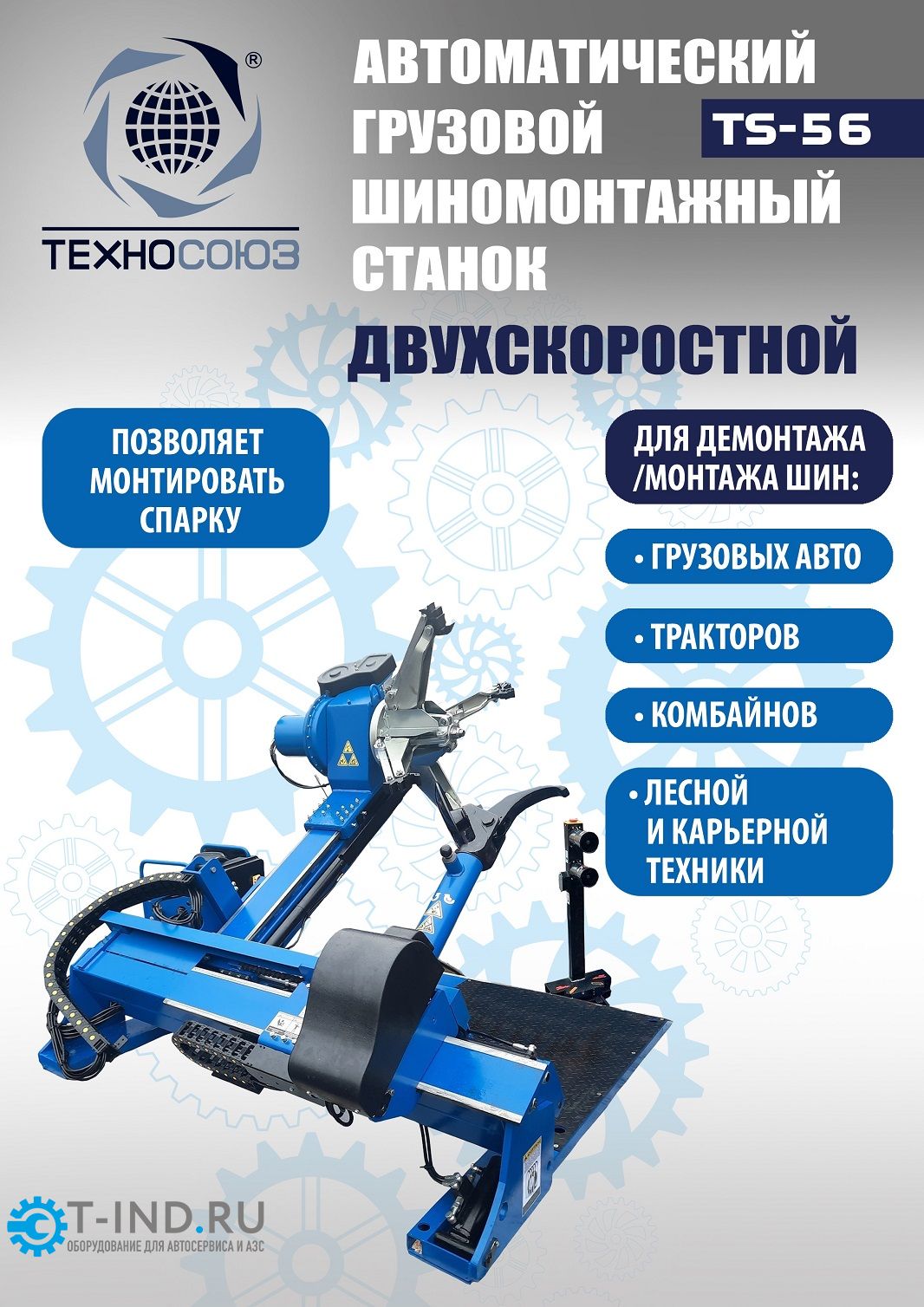 Шиномонтажный станок грузовой Техносоюз TS-56 до 60", автоматический, двухскоростной, 380В