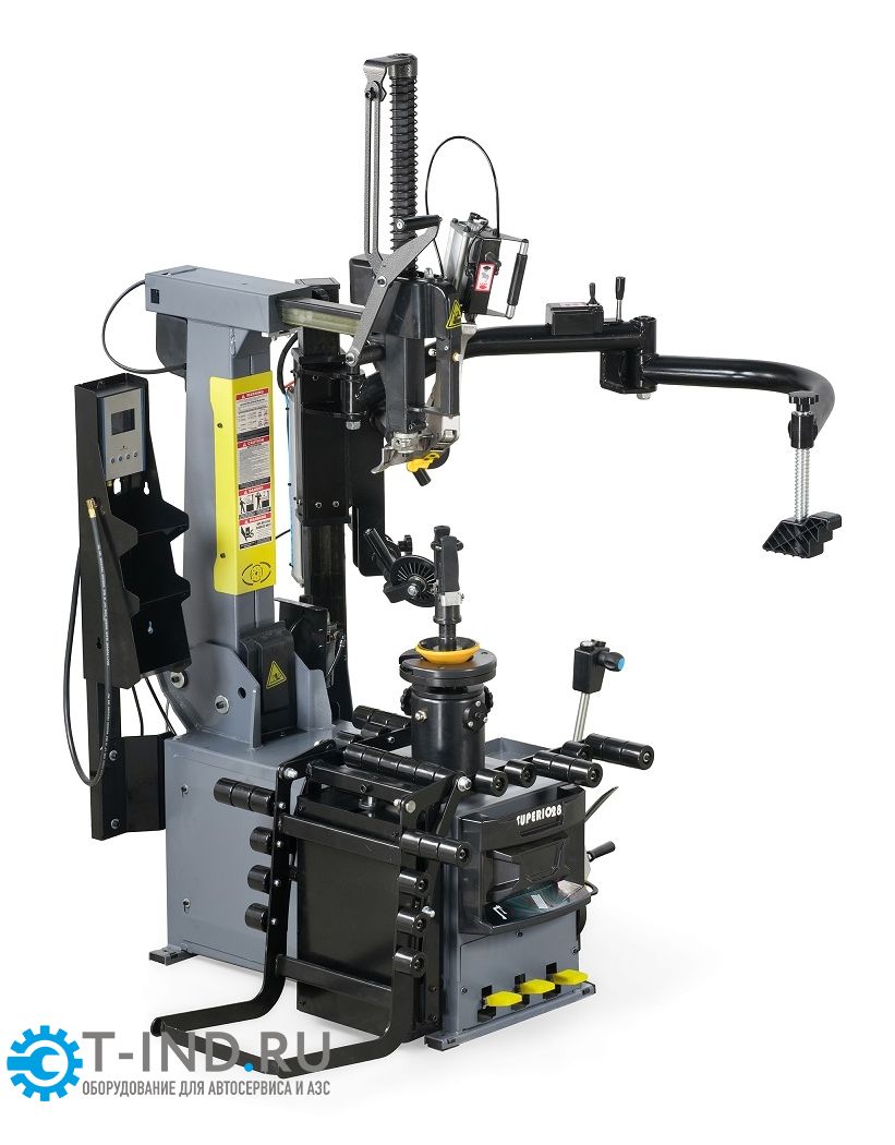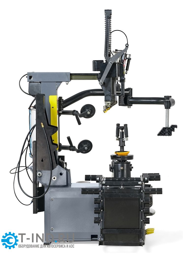 - Станок может оснащен вспомогательным устройством типа "третья рука" обеспечивающим легкий и быстрый демонтаж/монтаж низкопрофильных шин большого диаметра.