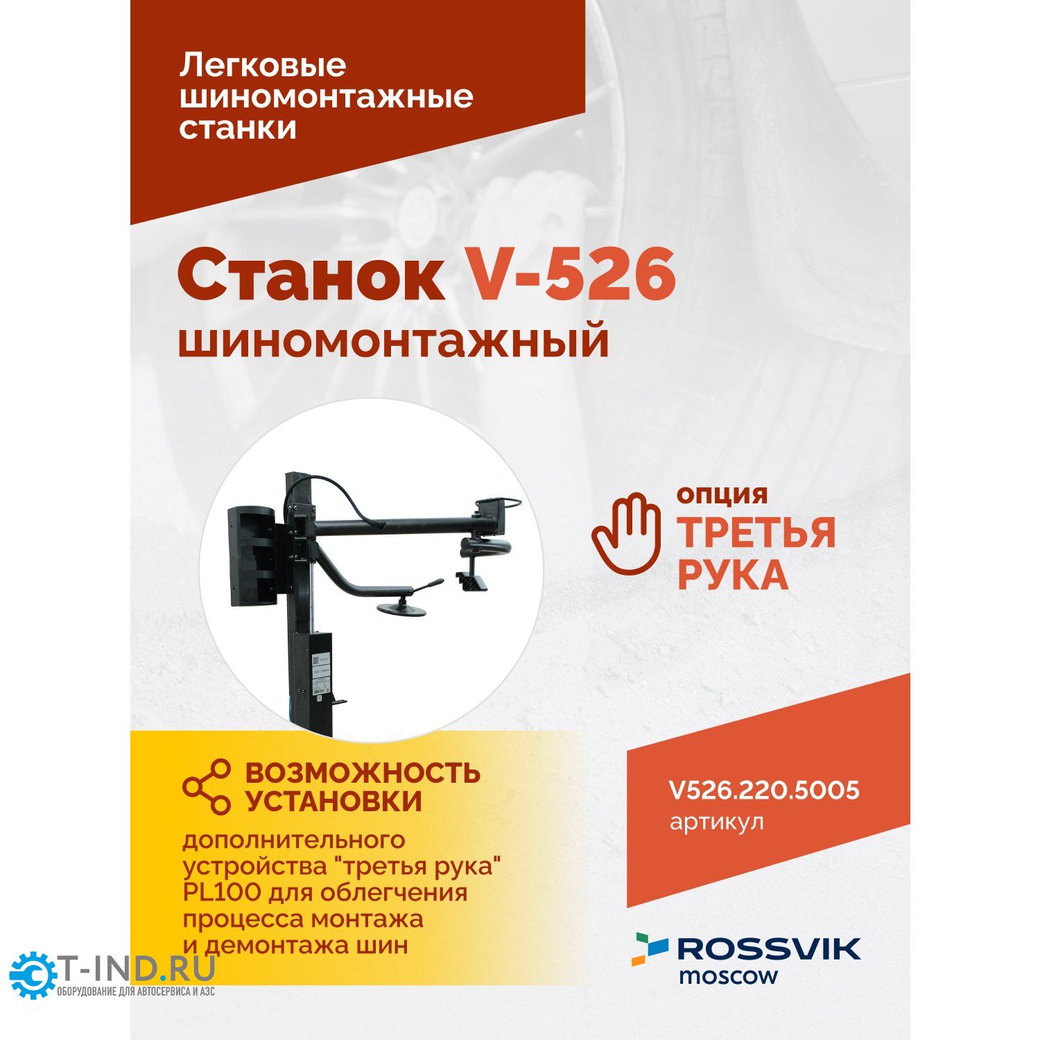 Шиномонтажный станок легковой ROSSVIK V526.220.5005, полуавтоматический, 220В