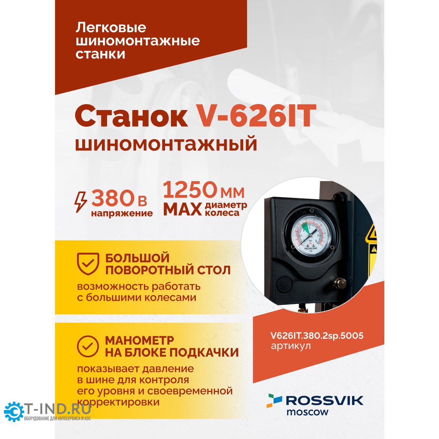 Шиномонтажный станок легковой ROSSVIK V626IT.380.5005, автоматический, двухскоростной, 380В
