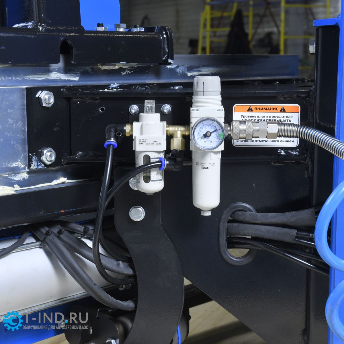 - Пневматический лифт монтажной головки упрощает работу оператора. Нет необходимости тянуться до верха штанги, чтобы опустить монтажную головку к диску