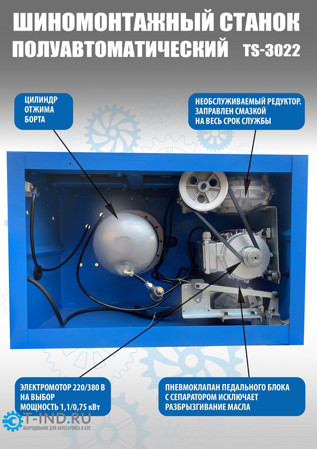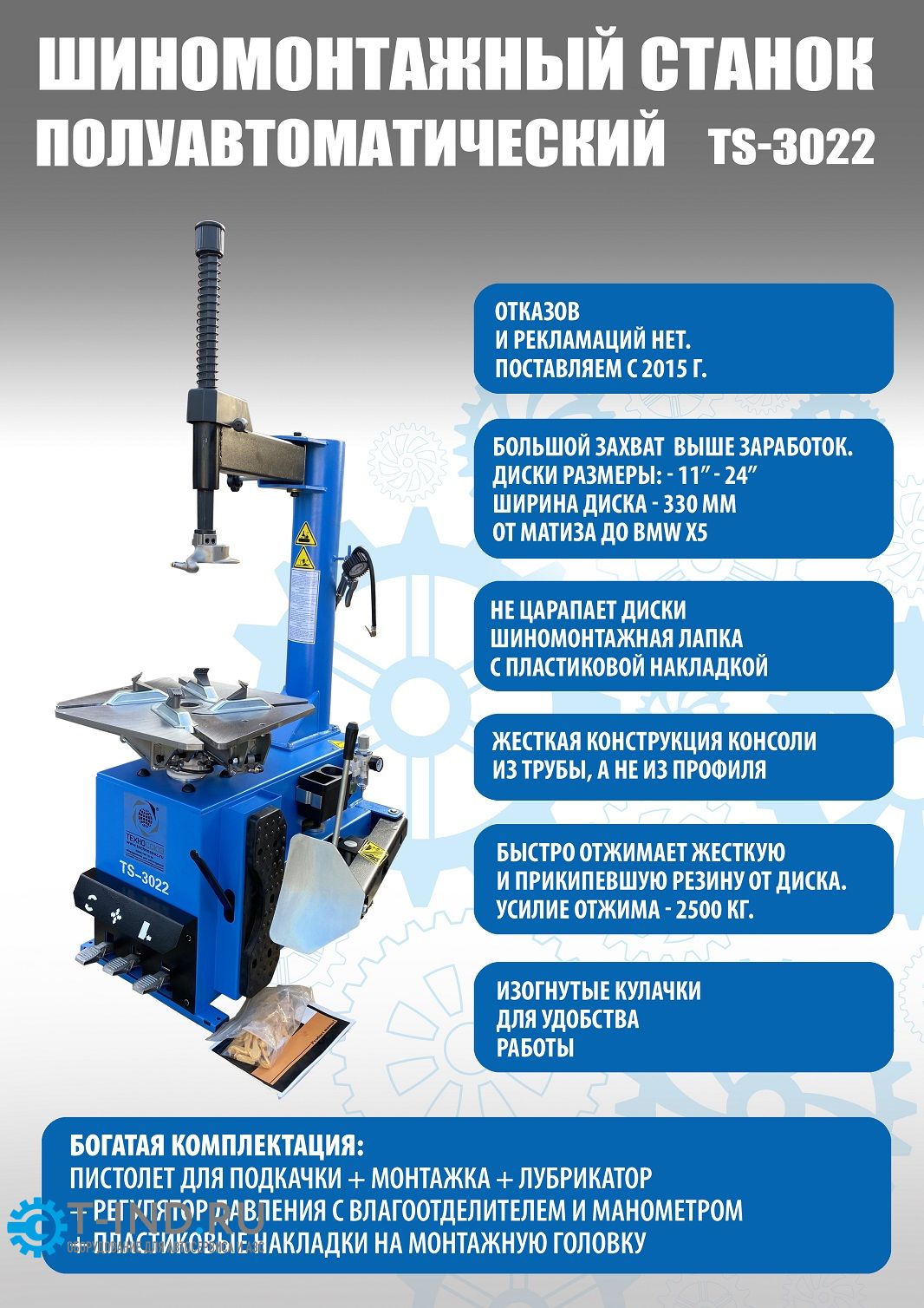 Шиномонтажный станок легковой Техносоюз TS-3022, полуавтоматический, 380В
