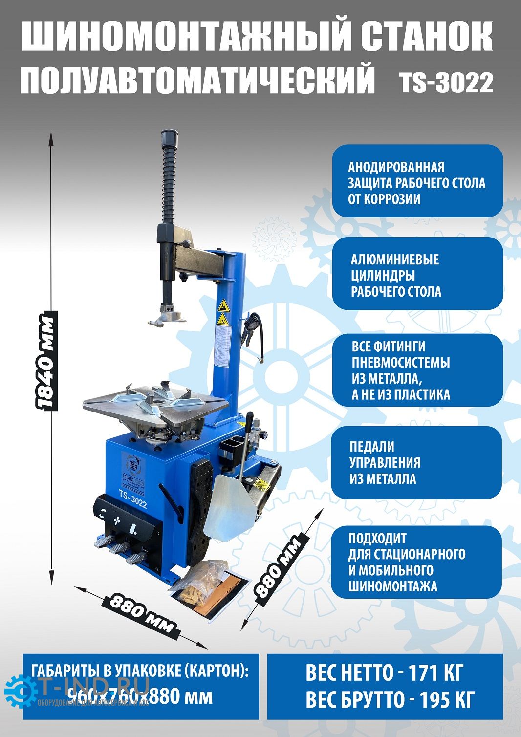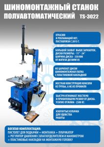 Шиномонтажный станок легковой Техносоюз TS-3022, полуавтоматический, 220В