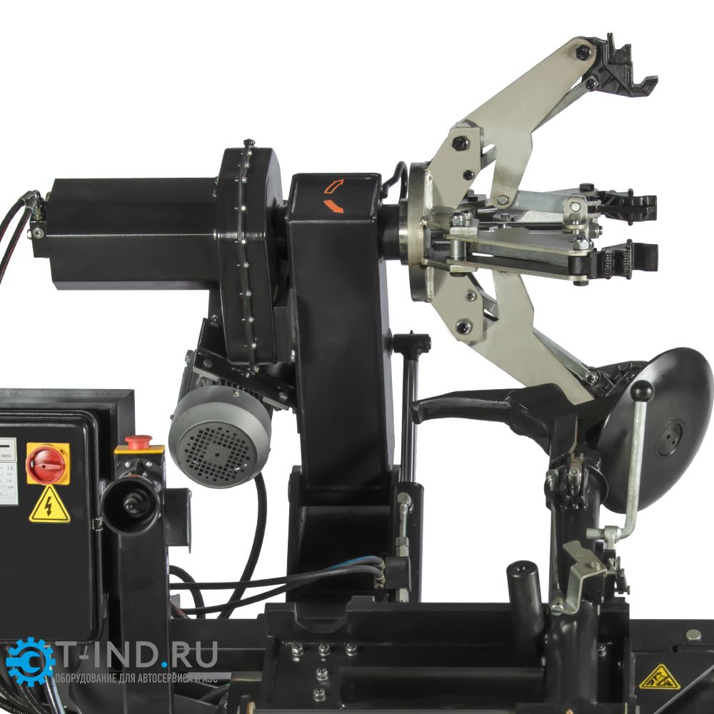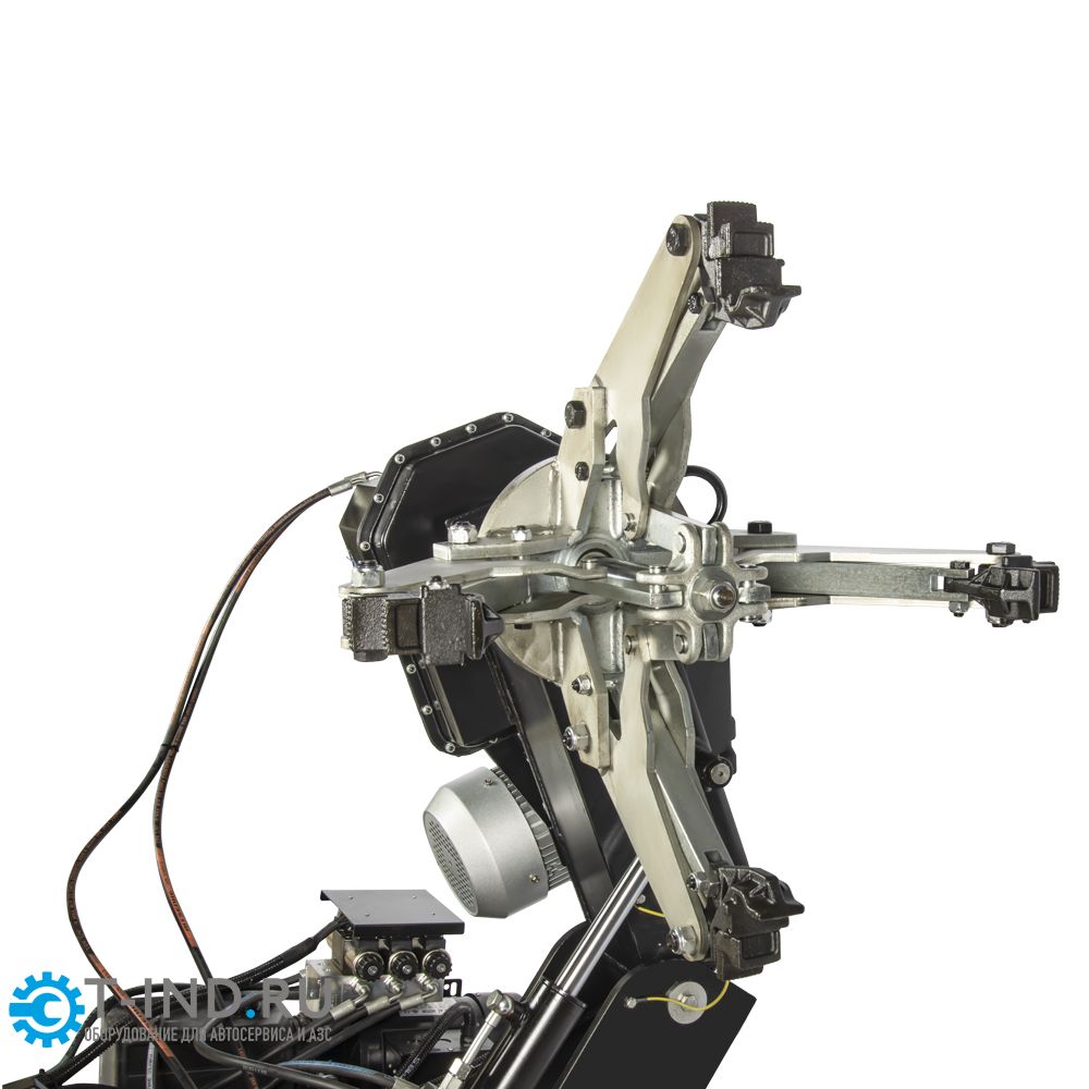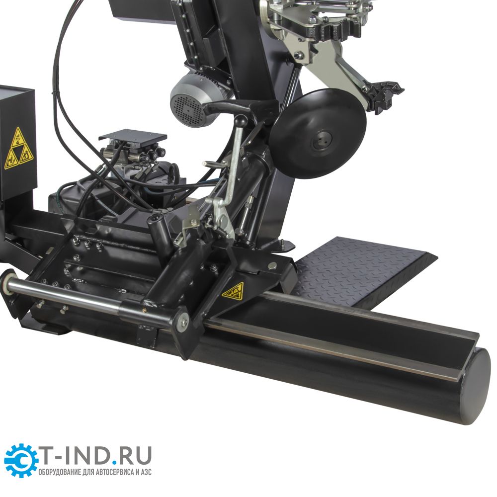 - Возможность одновременного движения зажимного устройства и каретки с монтажно-демонтажным инструментам увеличивает скорость обслуживания крупногабаритных шин, повышая продуктивность рабочего процесса;