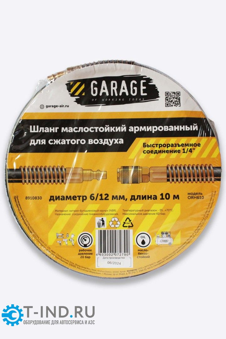 Шланг армированный маслостойкий Garage 8910830, 6х12 мм, 10м