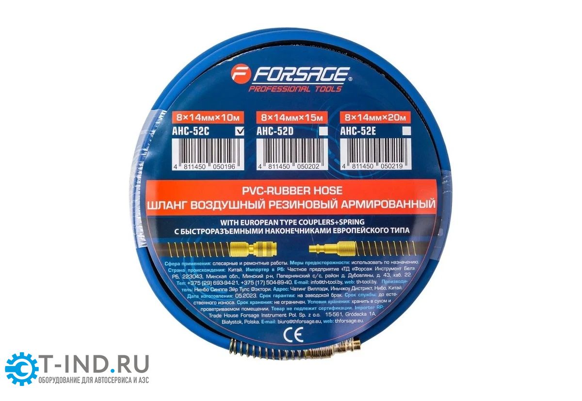 Шланг для раздачи сжатого воздуха Forsage F-AHC-52C(7274), 8х14мм, армированный с фитингами, 10м