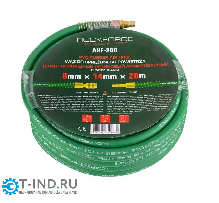 Шланг для раздачи сжатого воздуха RockForce RF-AHF-208(57591), 8/14мм, армированный с фитингами, 20м