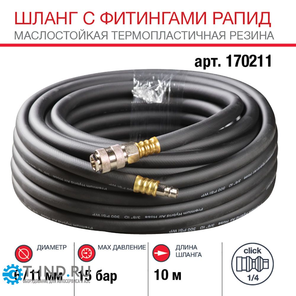 Шланг с фитингами рапид маслостойкая термопластичная резина 10м, диаметр 6х11 мм