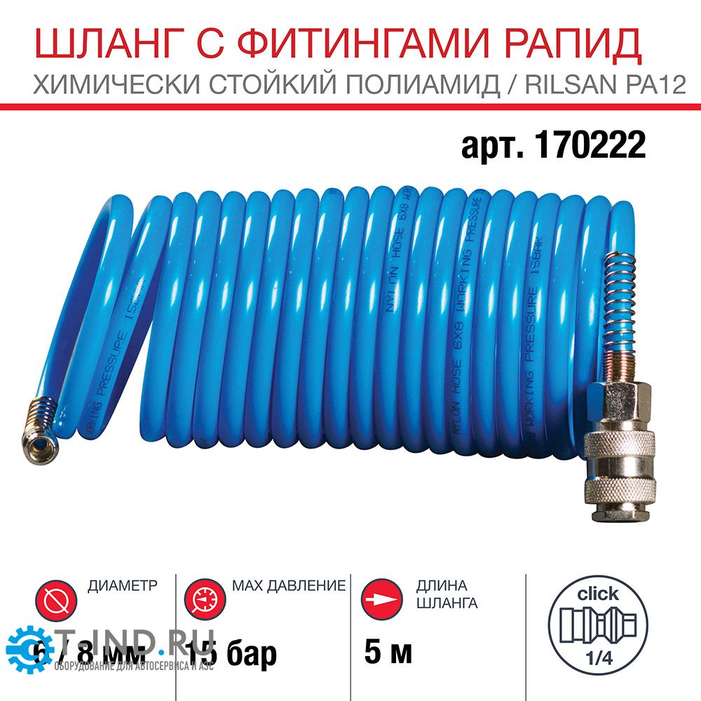 Шланг спиральный с фитингами рапид химически стойкий полиамидный (рилсан) 15 бар 6x8мм 5м