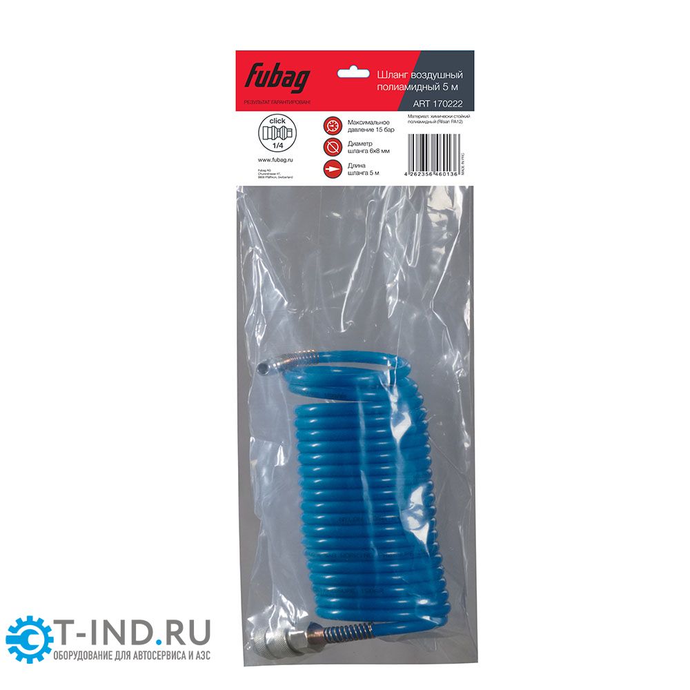 Шланг спиральный FUBAG 170222, с фитингами рапид, химически стойкий полиамид, 15бар, 6x8мм, 5м