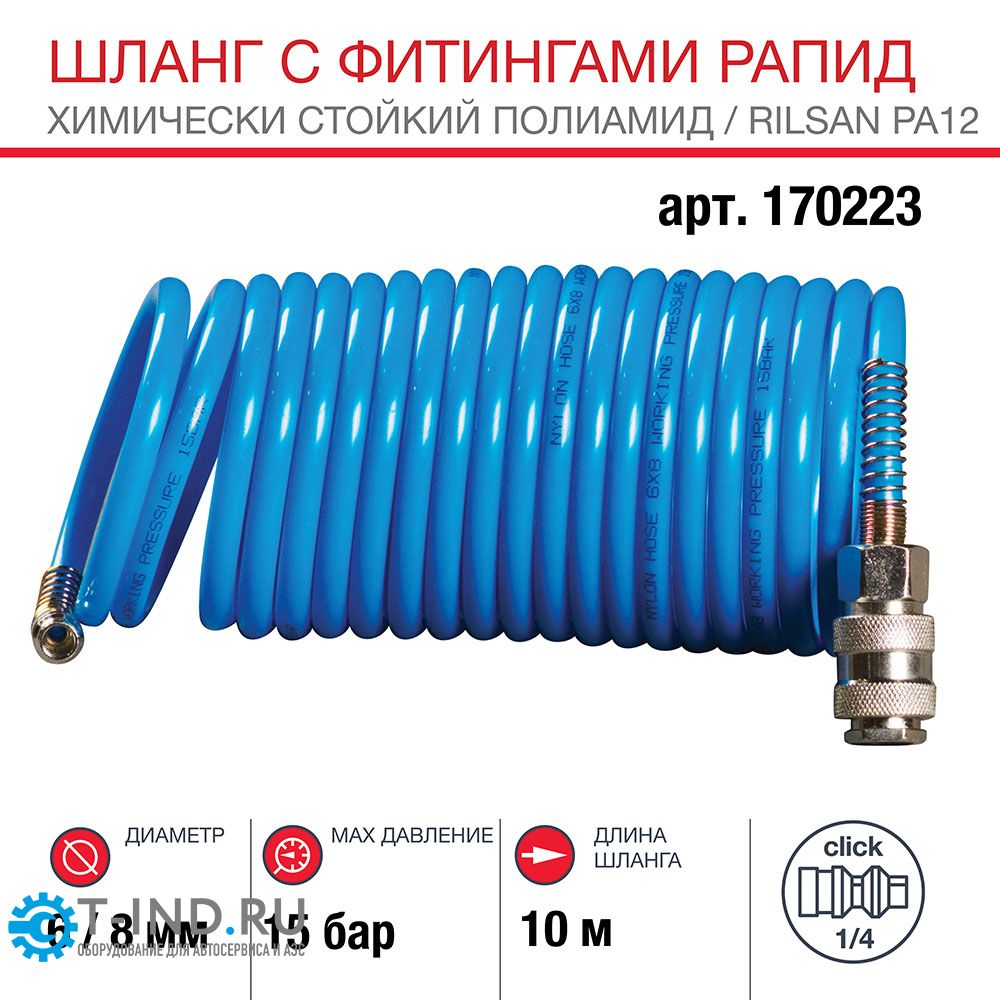 Шланг спиральный с фитингами рапид химически стойкий полиамидный (рилсан) 15бар 6x8мм 10м