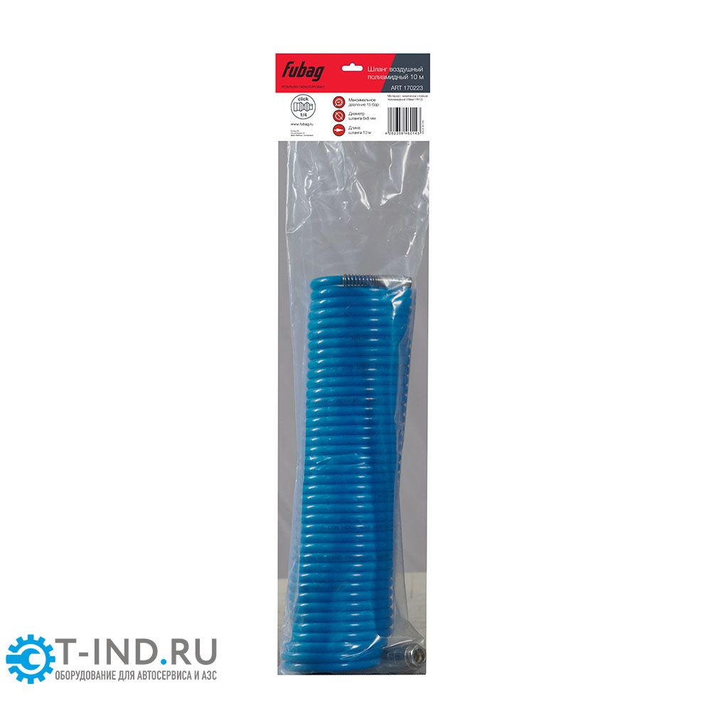Шланг спиральный FUBAG 170223, с фитингами рапид, химически стойкий полиамид, 15бар, 6x8мм, 10м