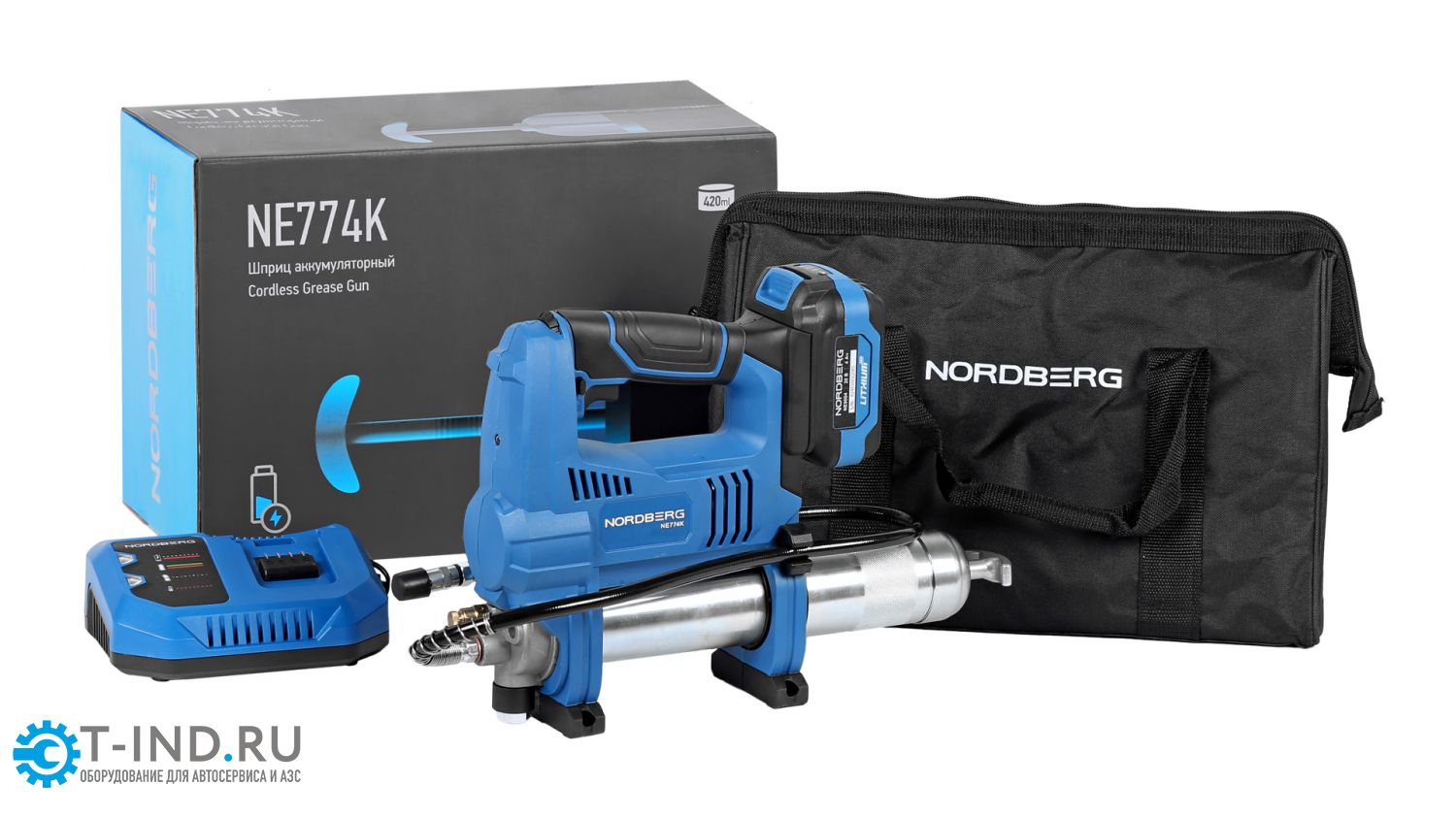 Шприц аккумуляторный для густой смазки Nordberg NE774K, 420 мл