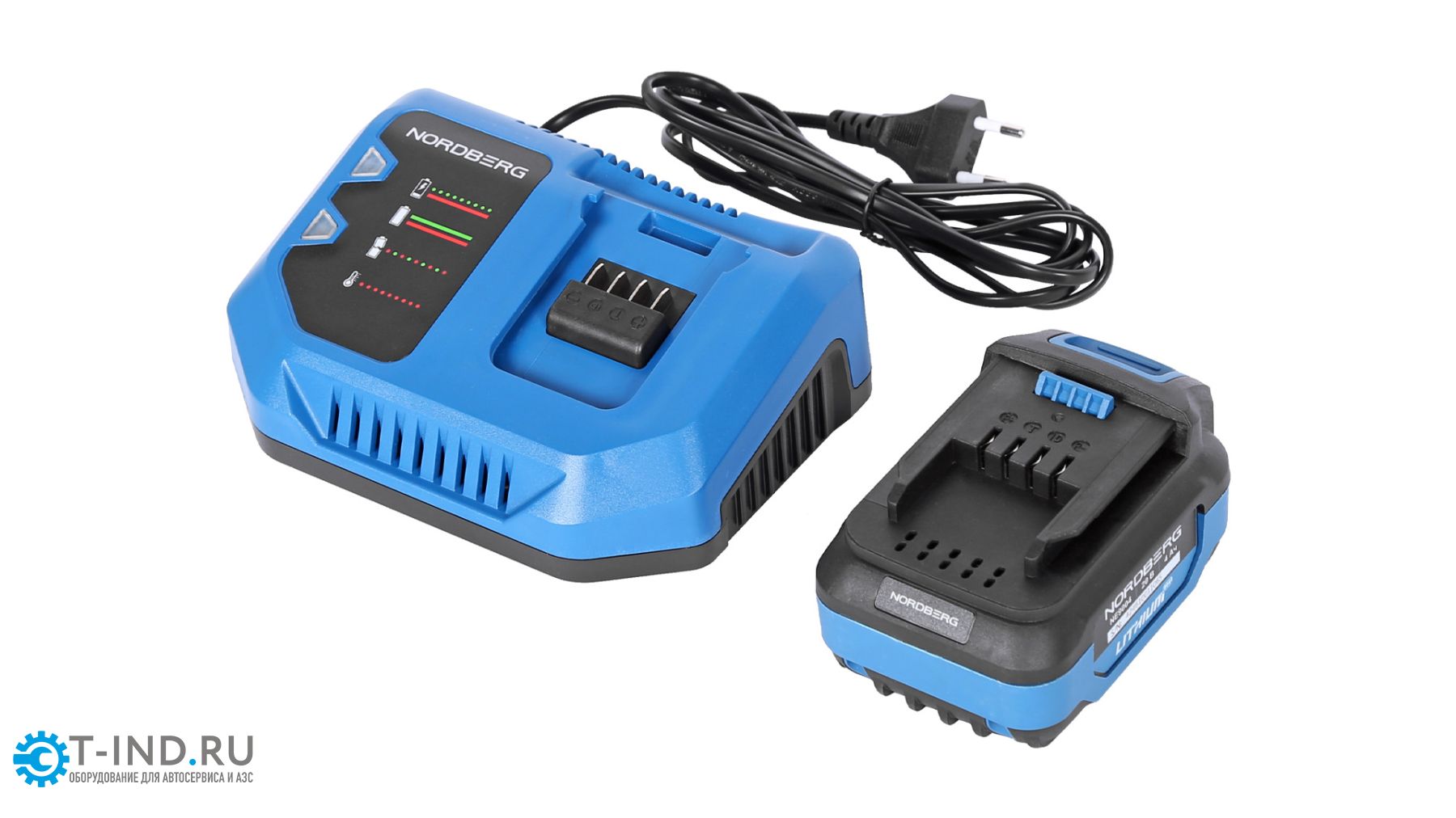 - Литиево-ионный аккумулятор емкостью 4 А·ч и напряжением 20 В, совместимый с аккумуляторным инструментом NORDBERG*