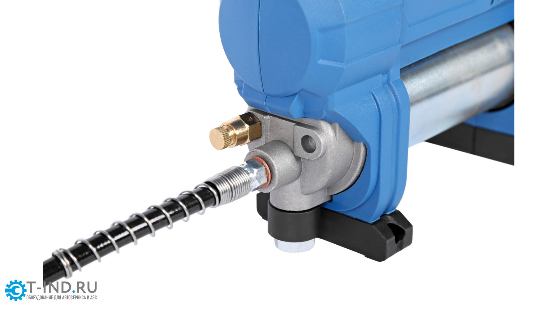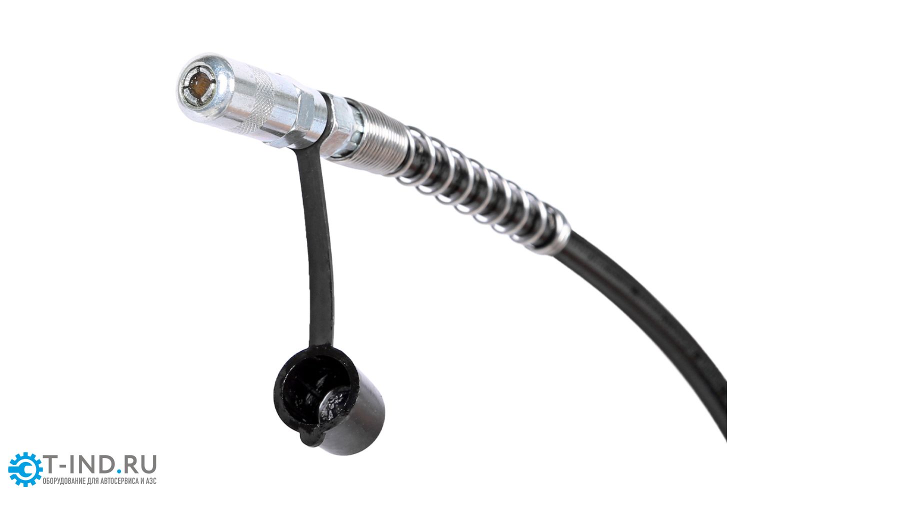 - Гибкий шланг подачи смазки с защитой в виде пружины от блокирующих смазку “перегибов”, позволяет работать в ограниченном пространстве