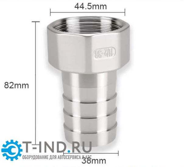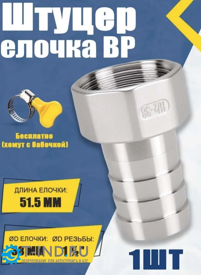 Штуцер нержавеющий внутренняя резьба 1 1/2"x38 мм елочка, с хомутом