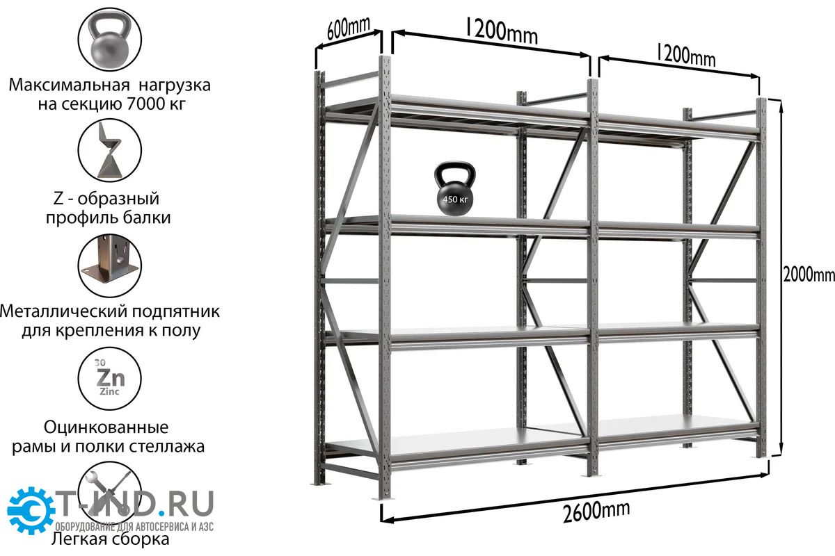 Система хранения IRONMEBEL optimus pro h-2000 zn, 4 яруса, 2600x600 мм, M-ССГР2000ОЦ2600600+