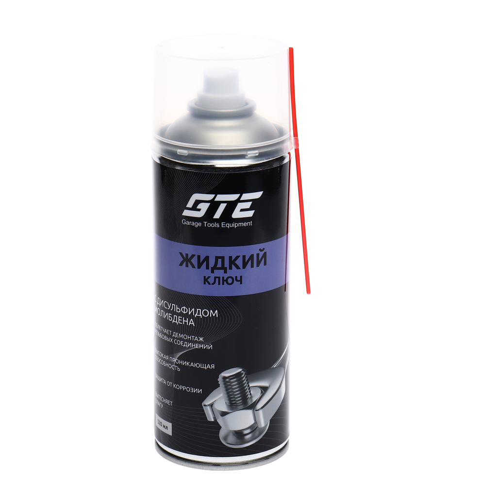 GTE-CK520M - Смазка универсальная проникающая жидкий ключ 520мл с дисульфидом молибдена GTE. Универсальное средство для облегчения демонтажа любых резьбовых соединений. Благодаря высокой проникающей способности позволяет быстро разъединить прикипевшие болты и гайки. Смазывает и защищает механизмы от коррозии.