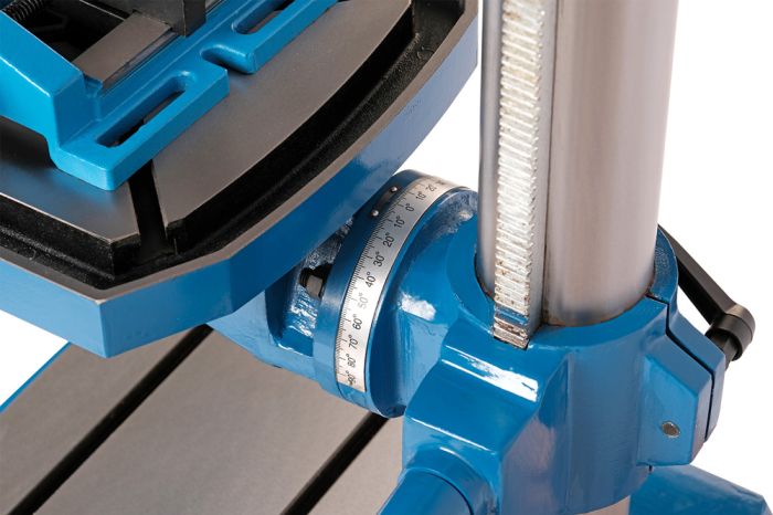 - Многофункциональный рабочий стол с Т-образными пазами, регулировкой по высоте, функцией наклона для обработки деталей под углом, а также множеством блокировок
