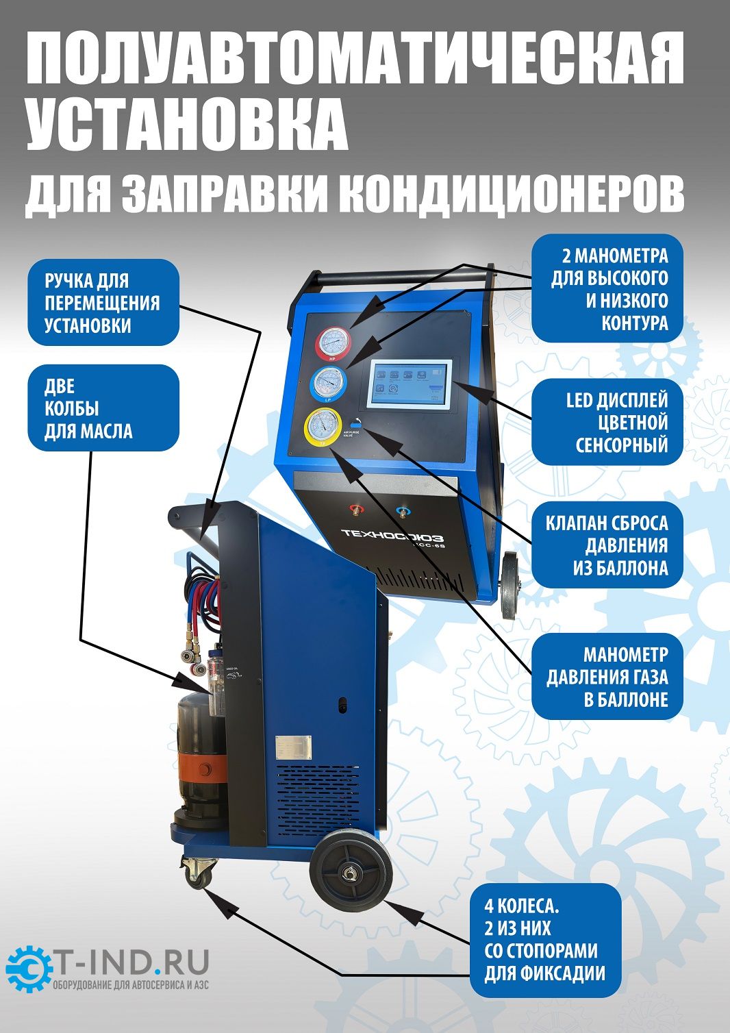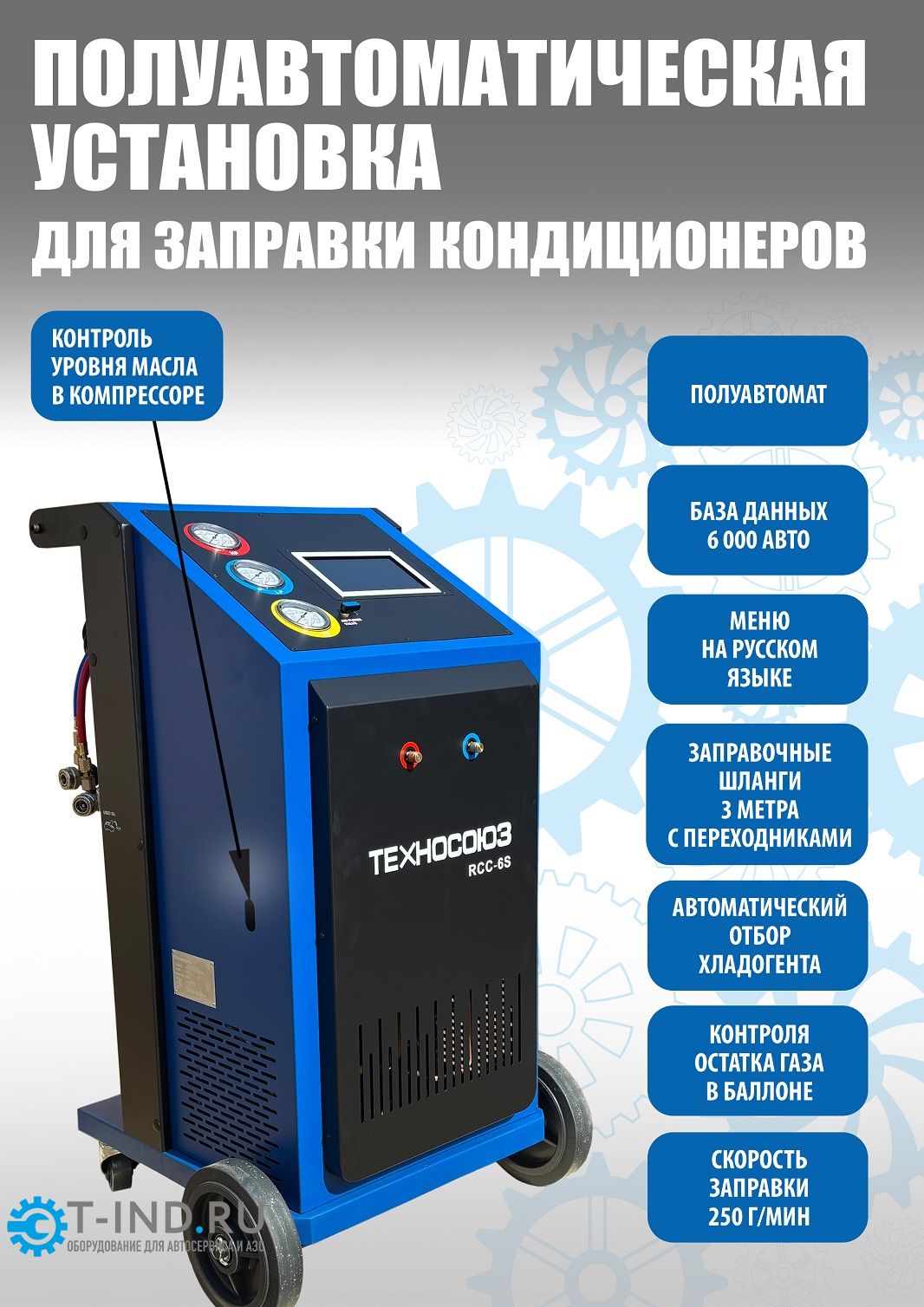 Станция для заправки автокондиционеров Техносоюз RCC-6S, полуавтомат, 60 л/мин