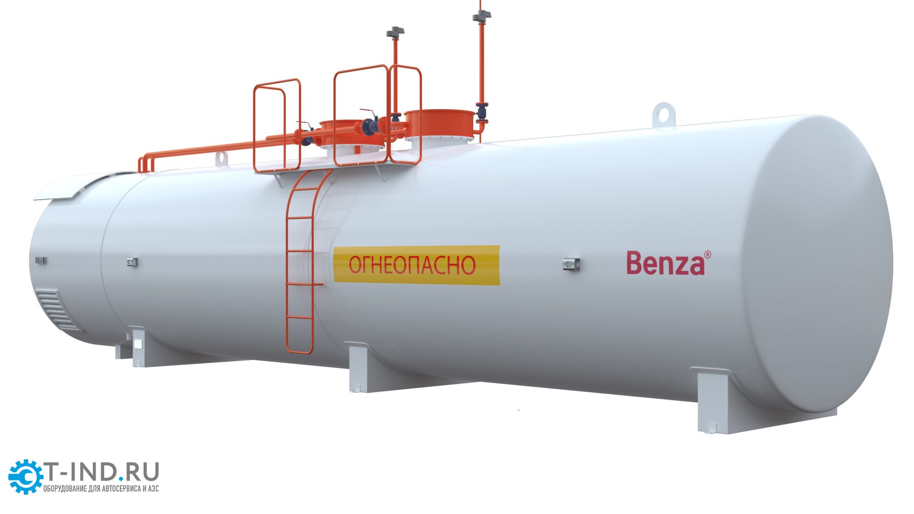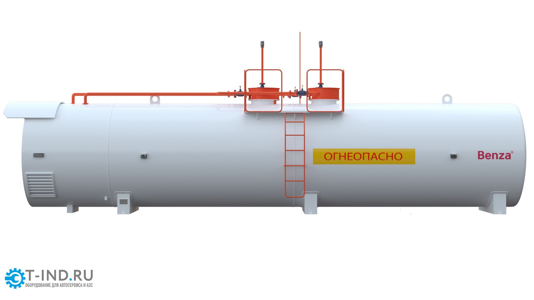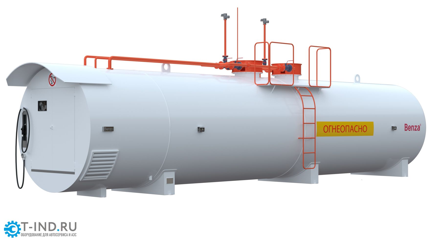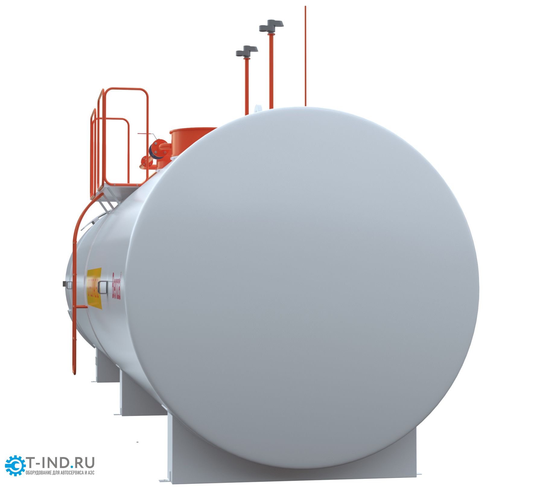 Контейнерная АЗС представляет собой цилиндрический горизонтальный резервуар с технологическим отсеком или площадкой для размещения топливораздаточного и дополнительного оборудования.