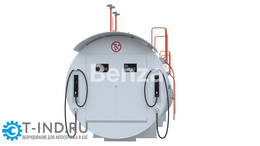 Контейнерная АЗС представляет собой цилиндрический горизонтальный резервуар с технологическим отсеком или площадкой для размещения топливораздаточного и дополнительного оборудования.