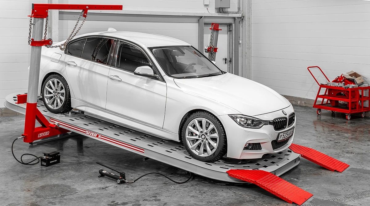 Рихтовочный стенд «SIVER К-110». Предназначен для восстановления аварийных кузовов автомобилей от малолитражек, до внедорожников и легких грузовиков, весом до 3500 кг. Бюджетная модель стапеля классической американской конструкции с большой платформой и одним силовым устройством башенного типа, усилием вытяжки 10 т. Силовое устройство фиксируется болтами, за счет затяжки через отверстия в платформе. Платформа стапеля изготовленная из высокопрочного стального профиля. Оборудование имеет сертификат соответствия требованиям безопасности.
