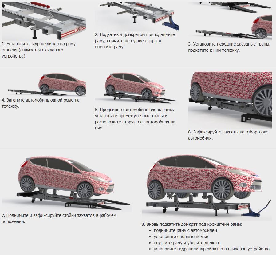 Благодаря оригинальной конструкции стенда установка автомобиля на стапель не займет много сил и времени.