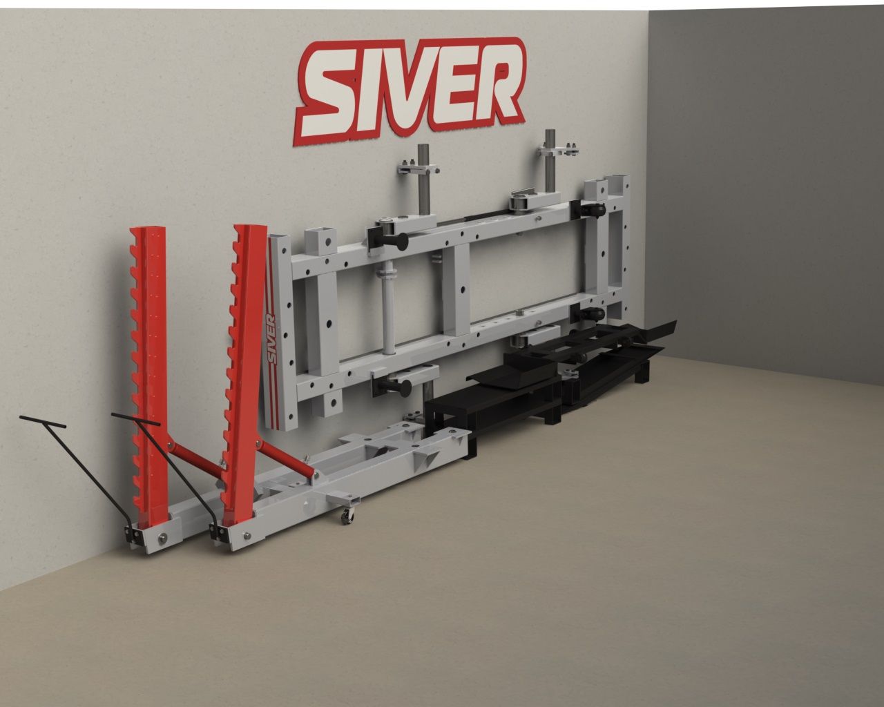- Стапель SIVER B является мобильным стендом, при помощи подкатного домкрата стапель легко перемещается по твердому покрытию.