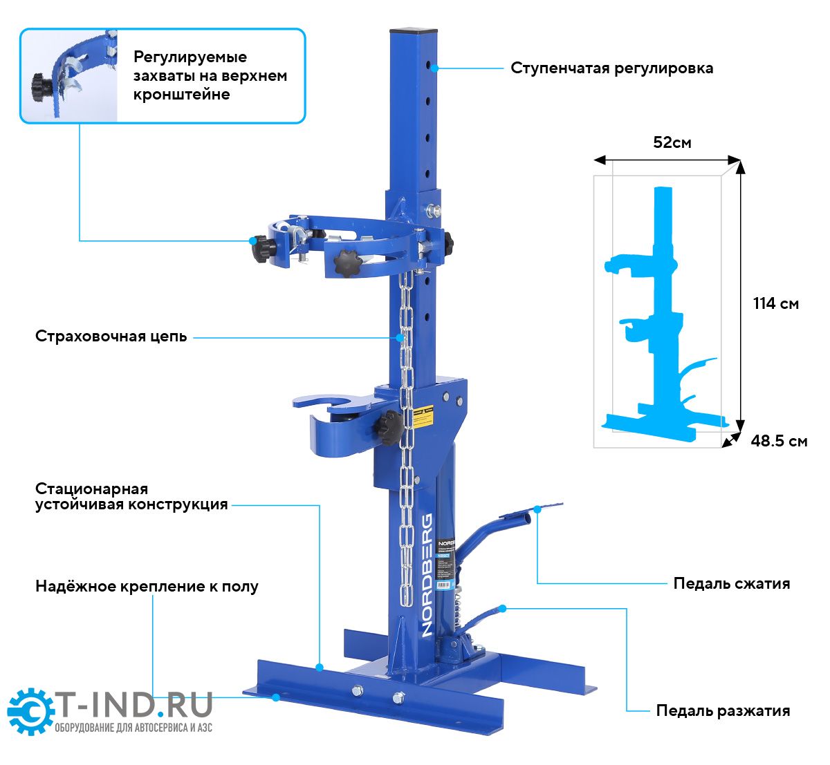 - Подходит для пружин длиной до 355 мм и диаметром от 100 до 250 мм;
