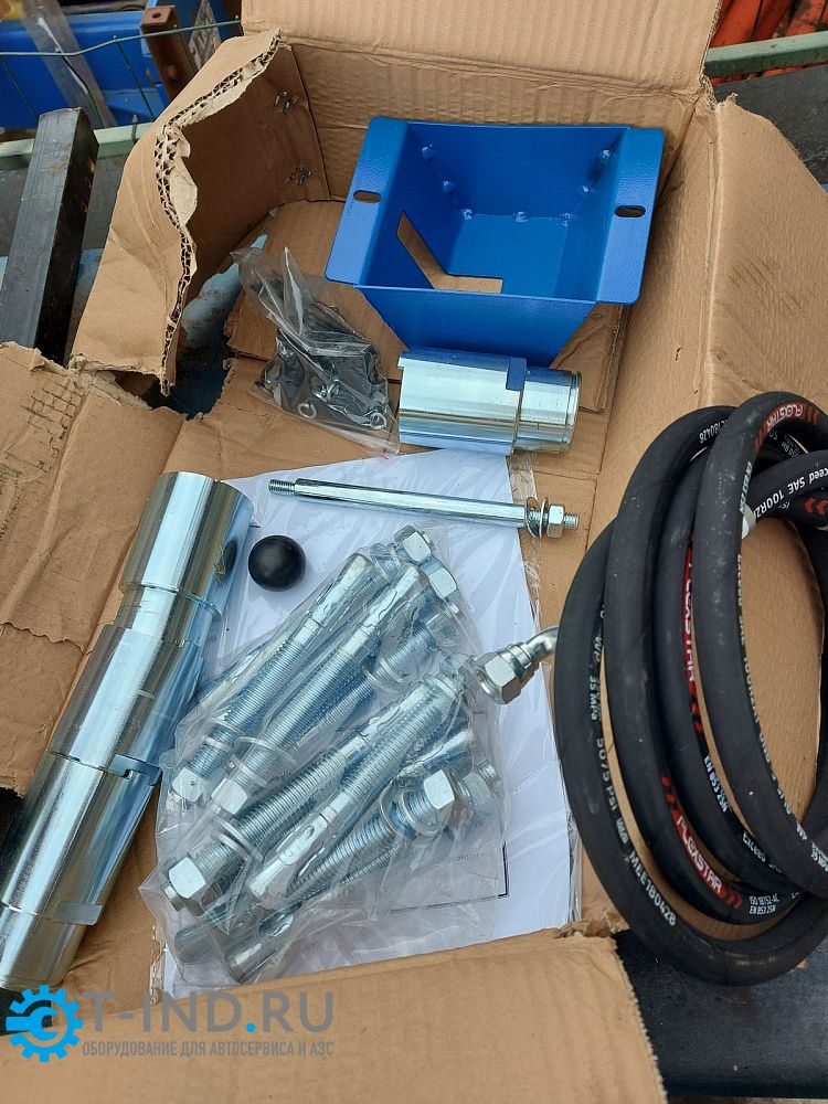 Материал - сталь, пластик, резина. Комплект запчастей, необходимых для установки подъемника. Включает в себя: комплект анкерных болтов, гидрошланг, адаптеры высоты 4 шт., крышка стопоров. Используется на модели T4MU/SA