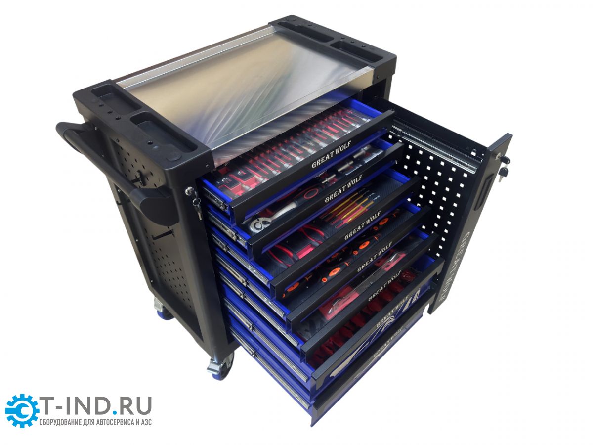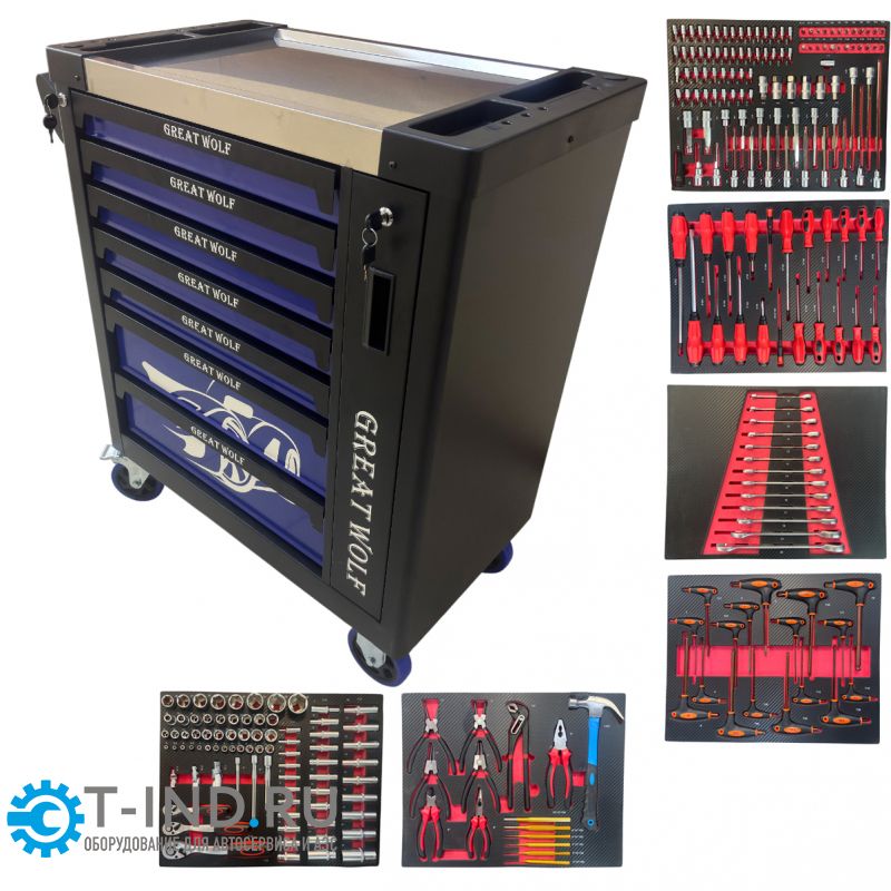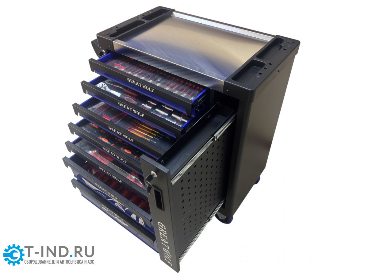 Инструментальная тележка с инструментом Great Wolf GW-8ST 248 BLUE SET – ваш надежный помощник в любой ремонтной зоне! Эта усиленная профессиональная тележка с 8 вместительными ящиками и 248 позициями высококачественного инструмента создана, чтобы сделать вашу работу максимально удобной и эффективной. Комплект из 6 ложементов с профессиональным инструментом Great Wolf подходит для решения любых задач – от мелкого ремонта до серьезных технических работ.