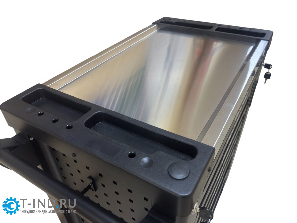 - Мобильность и устойчивость. Увеличенные колеса с тормозом гарантируют плавное перемещение тележки и ее надежную фиксацию на месте – забудьте о случайных сдвигах и неудобствах при работе.
