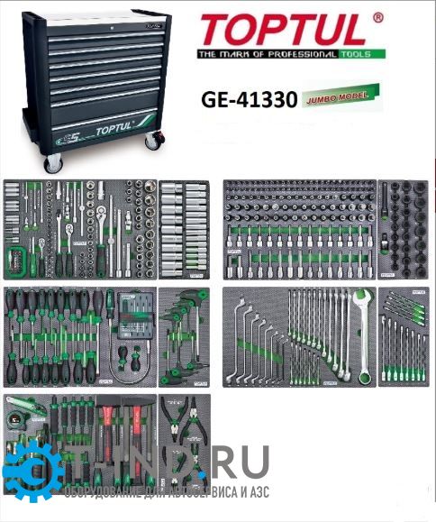 Тележка инструментальная Jumbo 7 ящиков с набором инструментов 413 предметов TOPTUL GE-41330