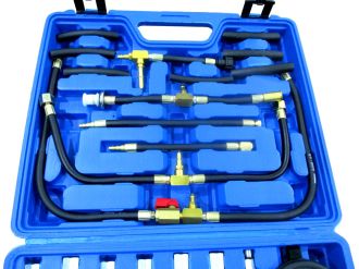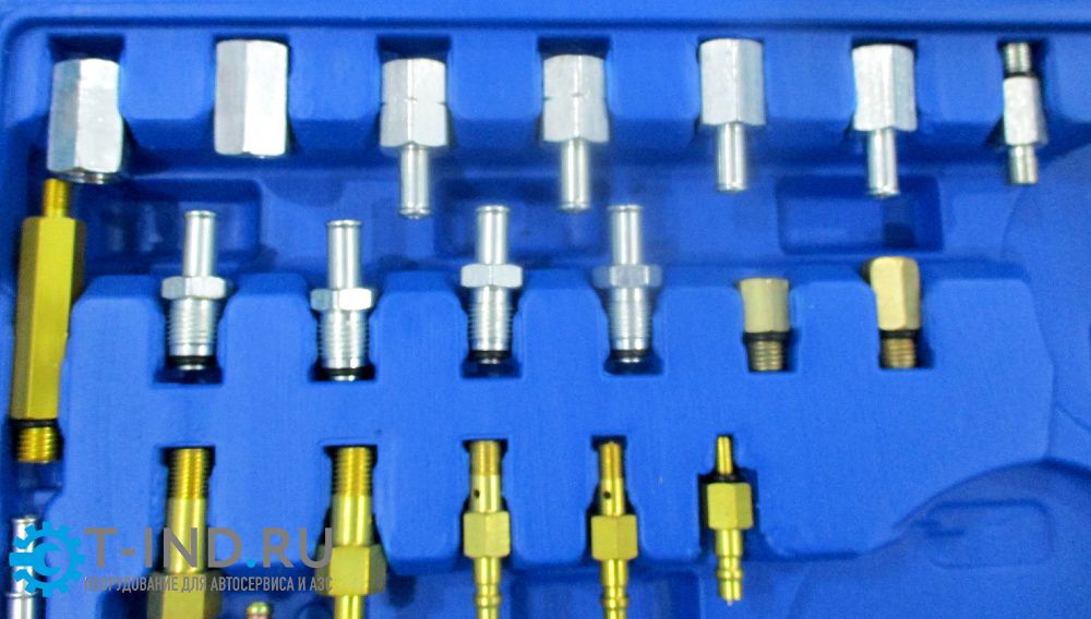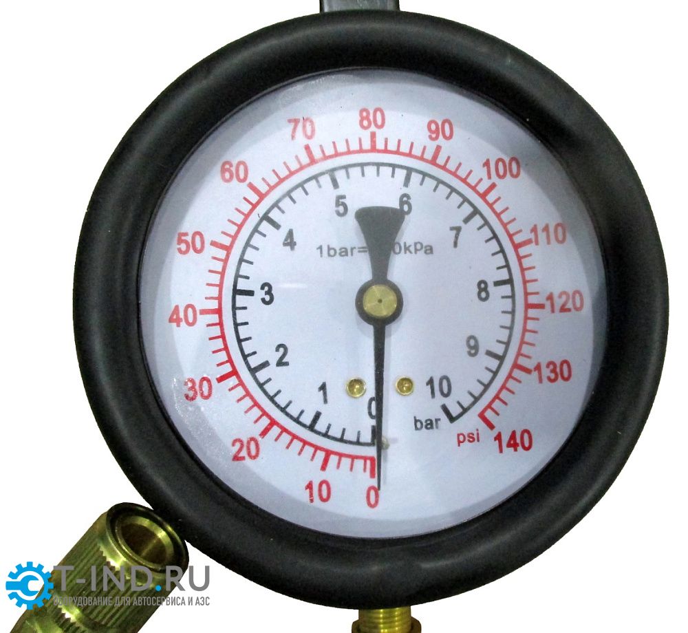 В комплект входит манометр 3-1/2" (0-140psi, 0-10бар), а также 40 деталей – адаптеры и шланги. С помощью инструмента можно вычислить: