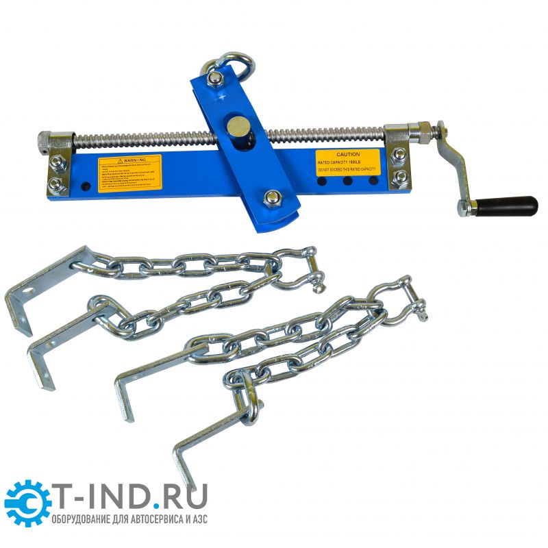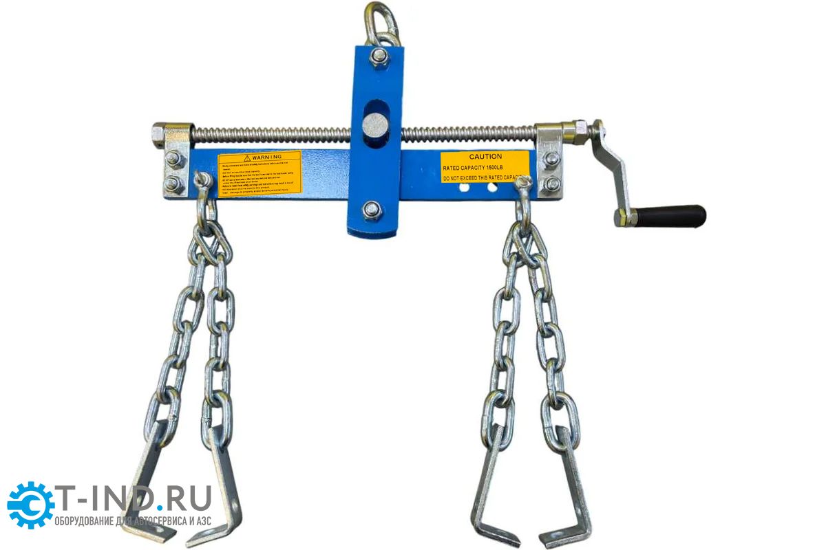Траверса выполнена из надежных материалов, что является залогом ее высокого ресурса. За счет простого винтового механизма с рукояткой можно без лишних усилий отцентровать подвешенный груз. Регулировка ширины захвата позволяет использовать траверсу с двигателями любого типа.
