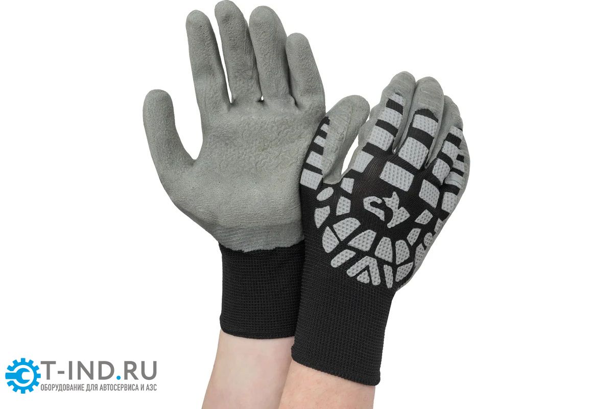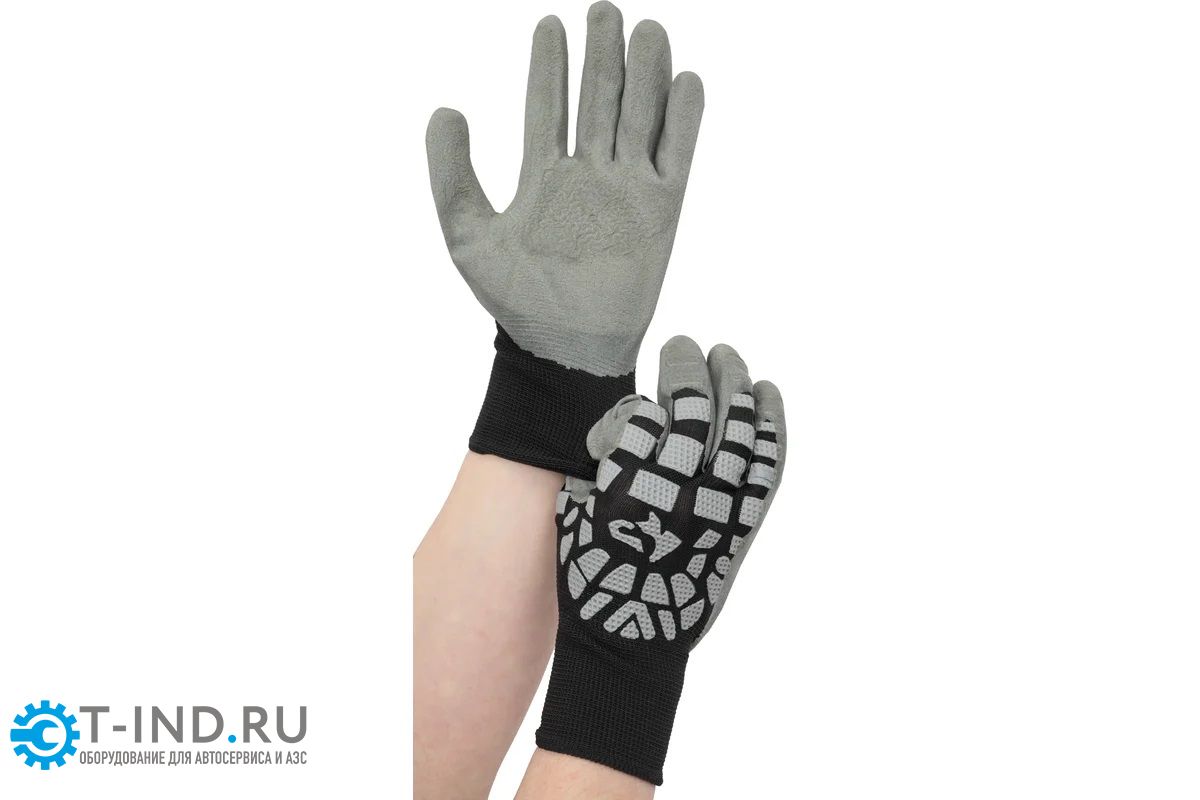 Трикотажные полиэфирные перчатки GGPL-110 с покрытием вспененным латексом и антивибрационными накладками, р-р 10