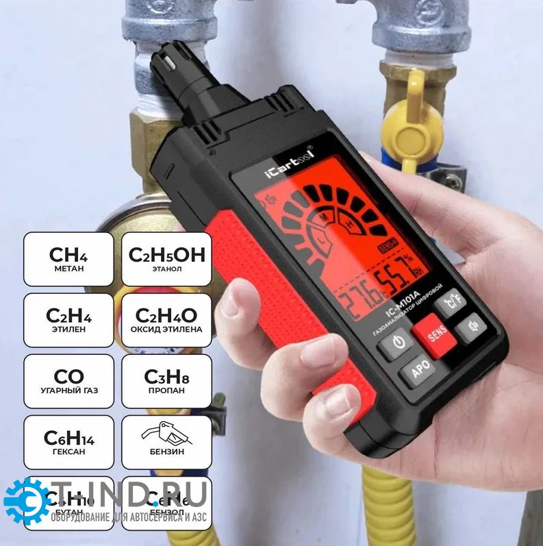 Цифровой детектор утечки взрывоопасных газов iCarTool IC-M101A, 0-1000 ppm
