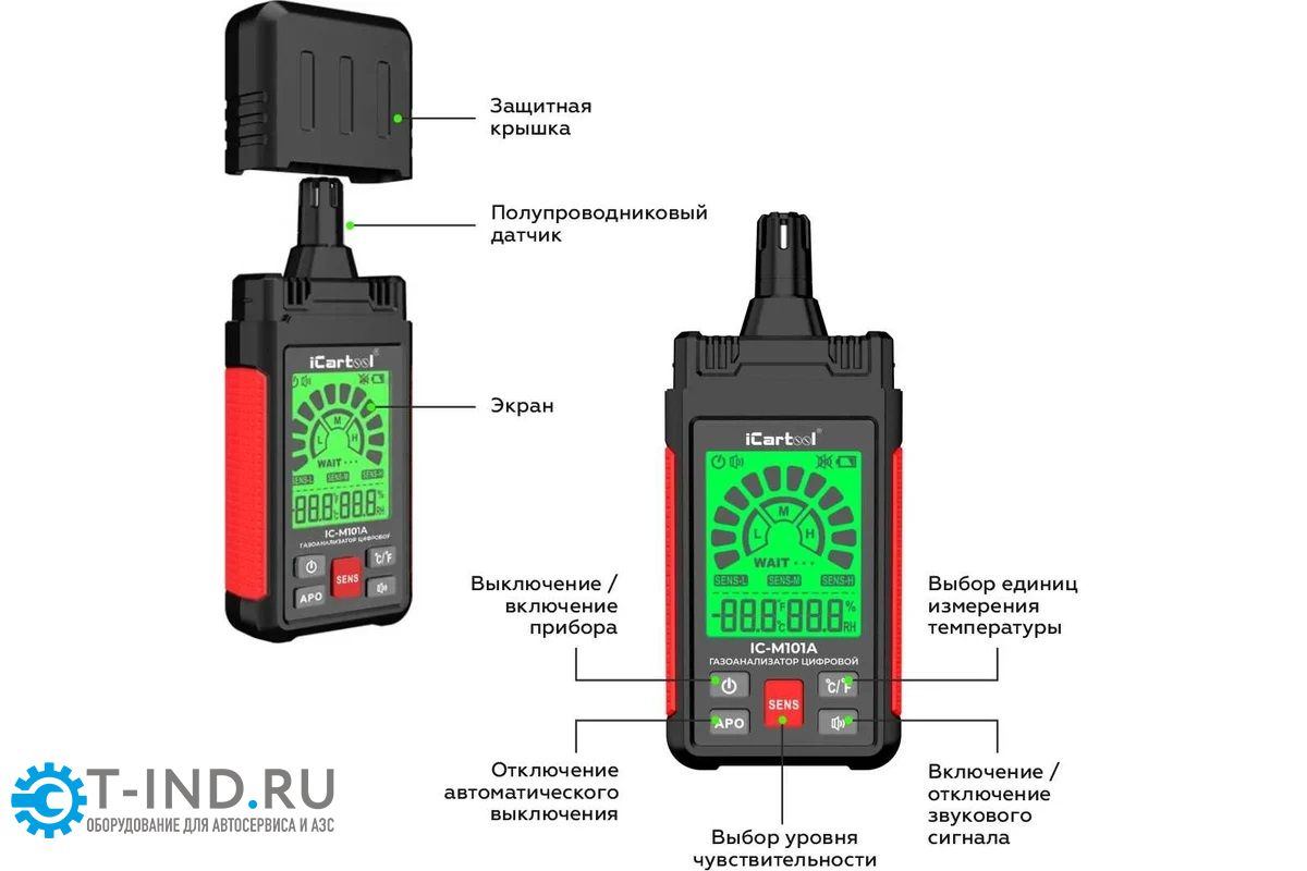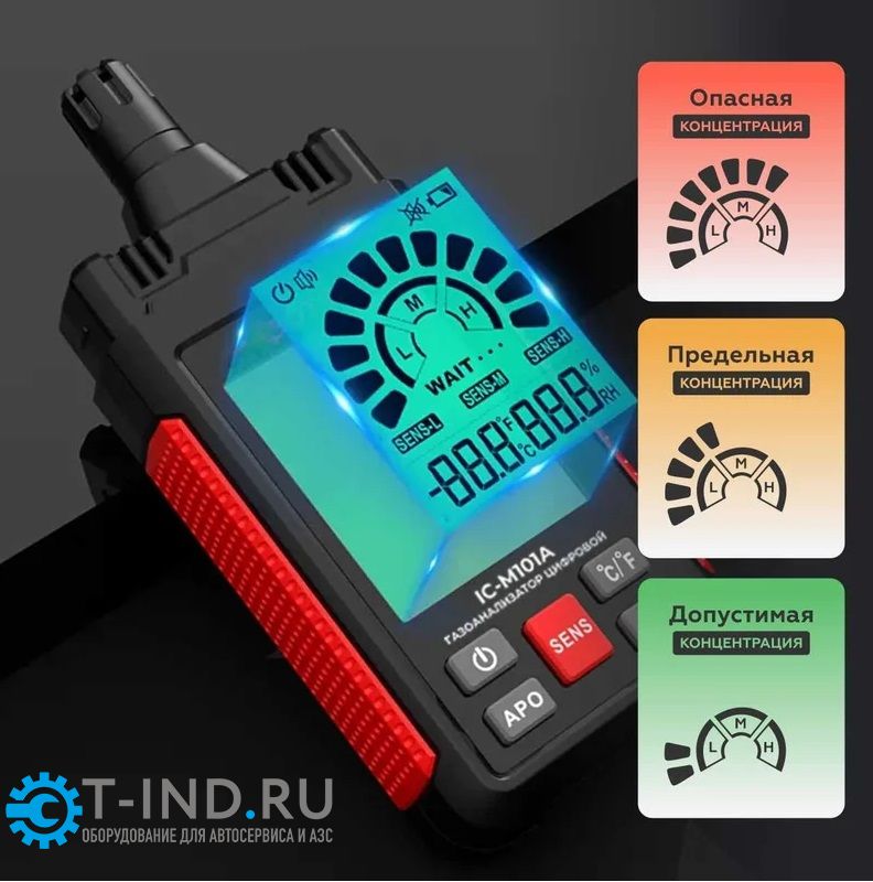 Цифровой газоанализатор IC-M101A предназначен для измерения объемной доли горючих газов, воспламеняющихся веществ и вредных паров. Контролирует превышение допустимой концентрации вредных паров в помещениях бытового и производственного назначения, а также используется для измерения температуры и относительной влажности окружающей среды.