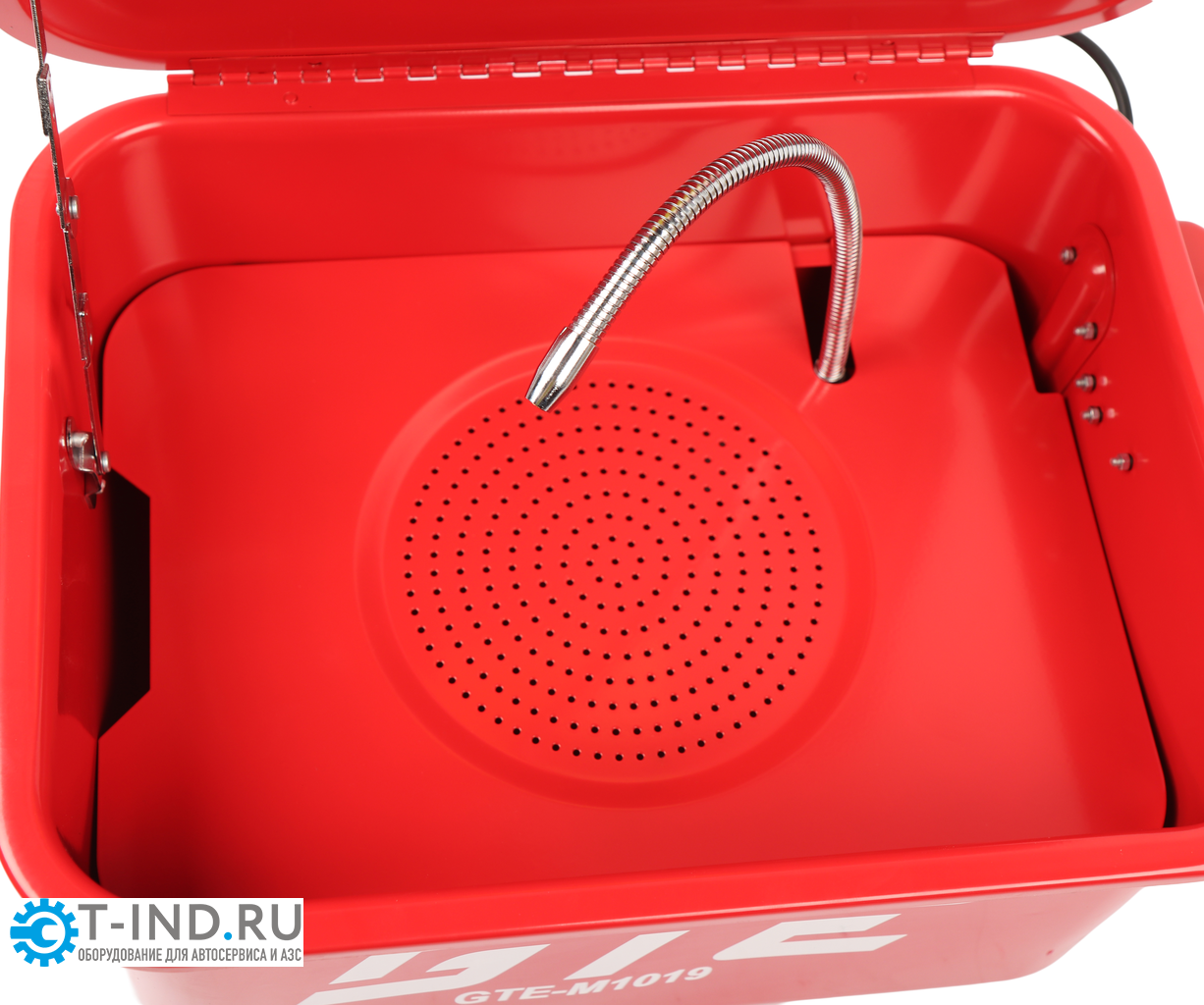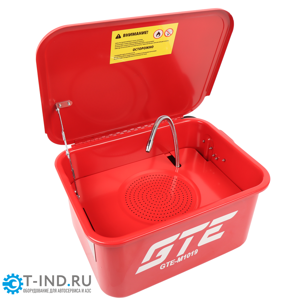 GTE‑M1019 — компактное профессиональное оборудование для ежедневной очистки деталей и агрегатов автомобилей в автомастерских, гаражах и автотранспортных предприятиях. Очистка выполняется физико‑химическим методом с использованием циркулирующего моющего раствора на водной и щелочной основе.