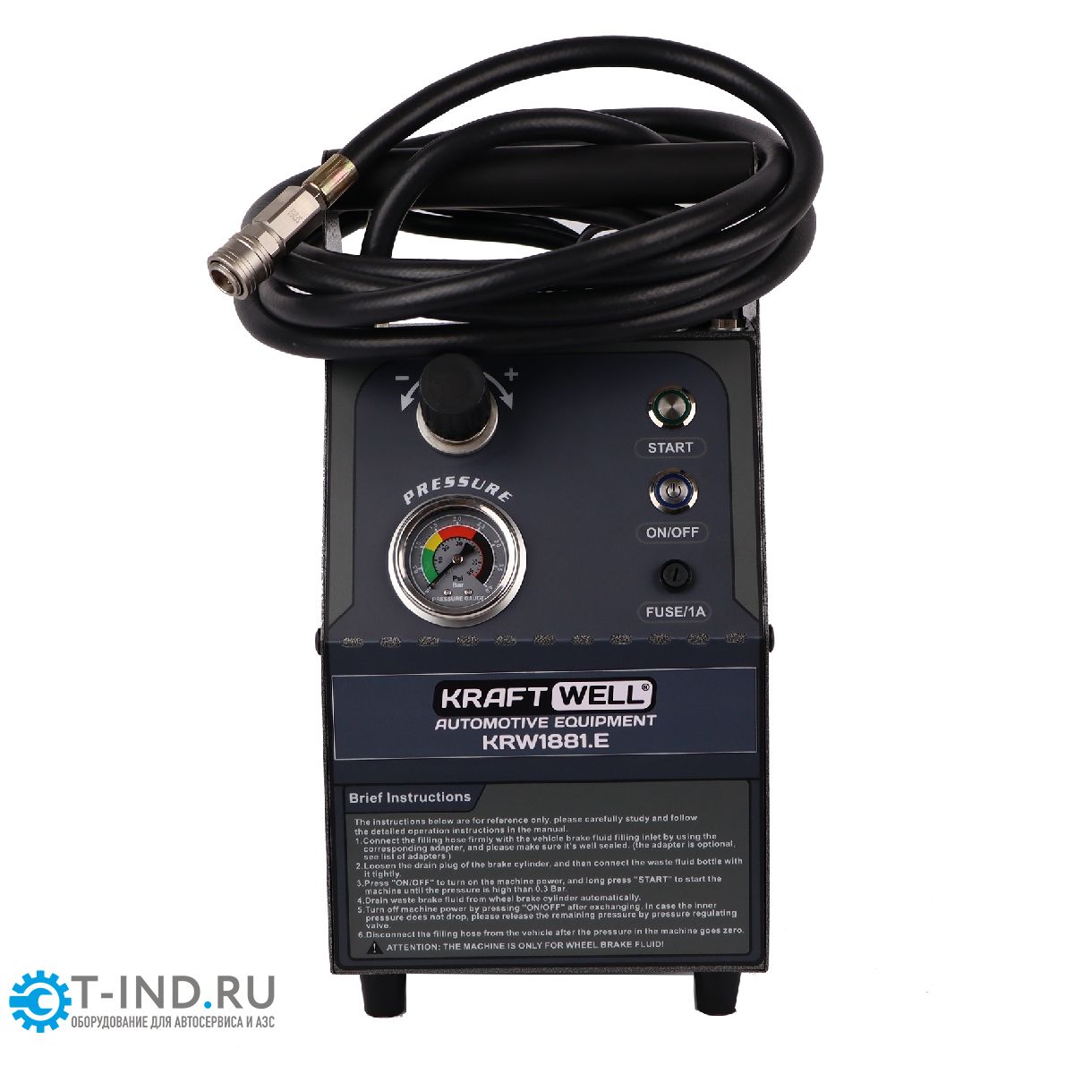 Установка KRW1881.E предназначена для прокачки гидравлических систем автомобиля - тормозной и сцепления. В установке применяется электрический насос мощностью 55Вт, питающийся от сети переменного напряжения 220В.