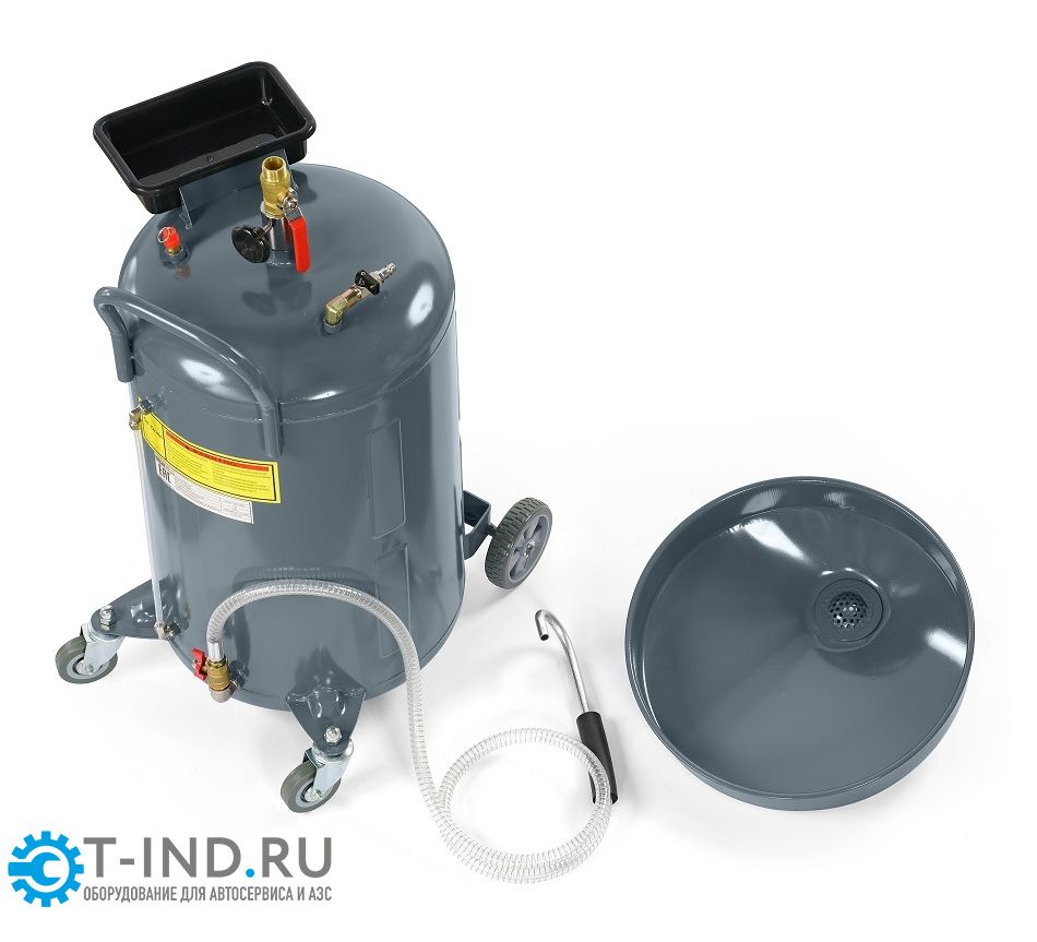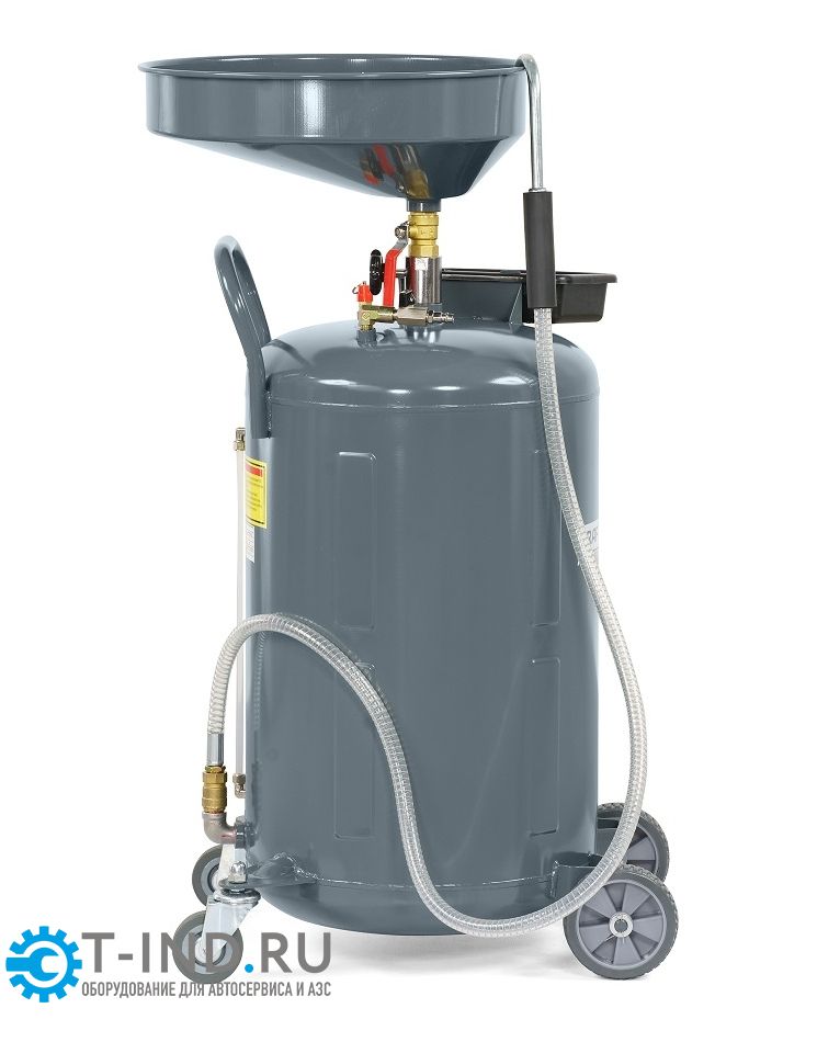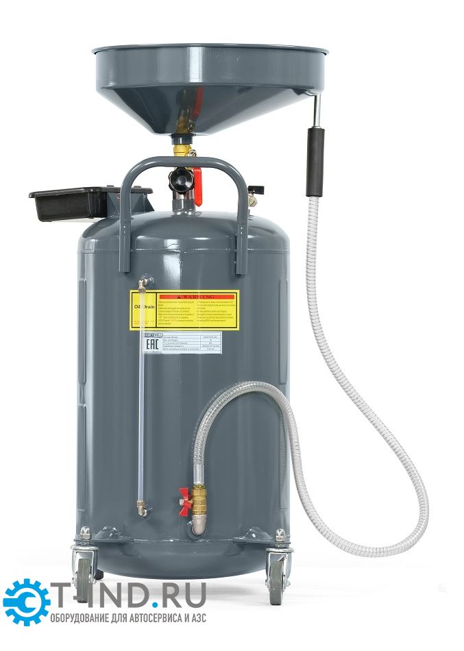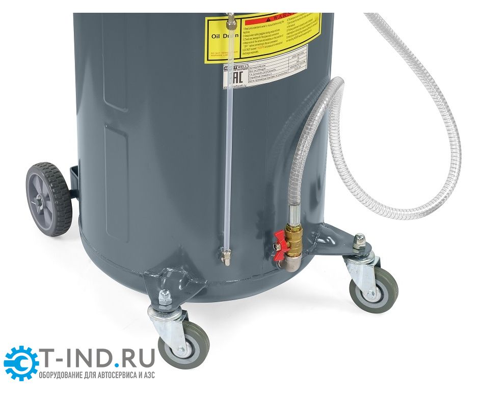Установка KRAFTWELL, модель KRW1803.80L предназначена для сбора масла, антифриза и других технических жидкостей методом слива самотеком. Высота приемной ванны регулируется позволяя точно подобрать удобное положение при работе, а также защитить от разбрызгивания масла. У основания приемной ванны расположен шаровый кран, перекрывающий слив жидкости в основную емкость до контроля ее состояния. Индикатор уровня, расположенный на емкости, показывает ее наполненность и вовремя сигнализирует о необходимости опустошения. Для слива жидкости из установки необходимо подключить сжатый воздух к штуцеру, расположенному в верхней части емкости. Под давлением вся жидкость выливается через гибкий шланг с жестким наконечником в емкость большего объема и затем утилизируется. Давление воздуха контролируется по манометру. Для безопасности на корпусе установлен клапан избыточного давления, который предохраняет стенки от деформации и разрушения.
