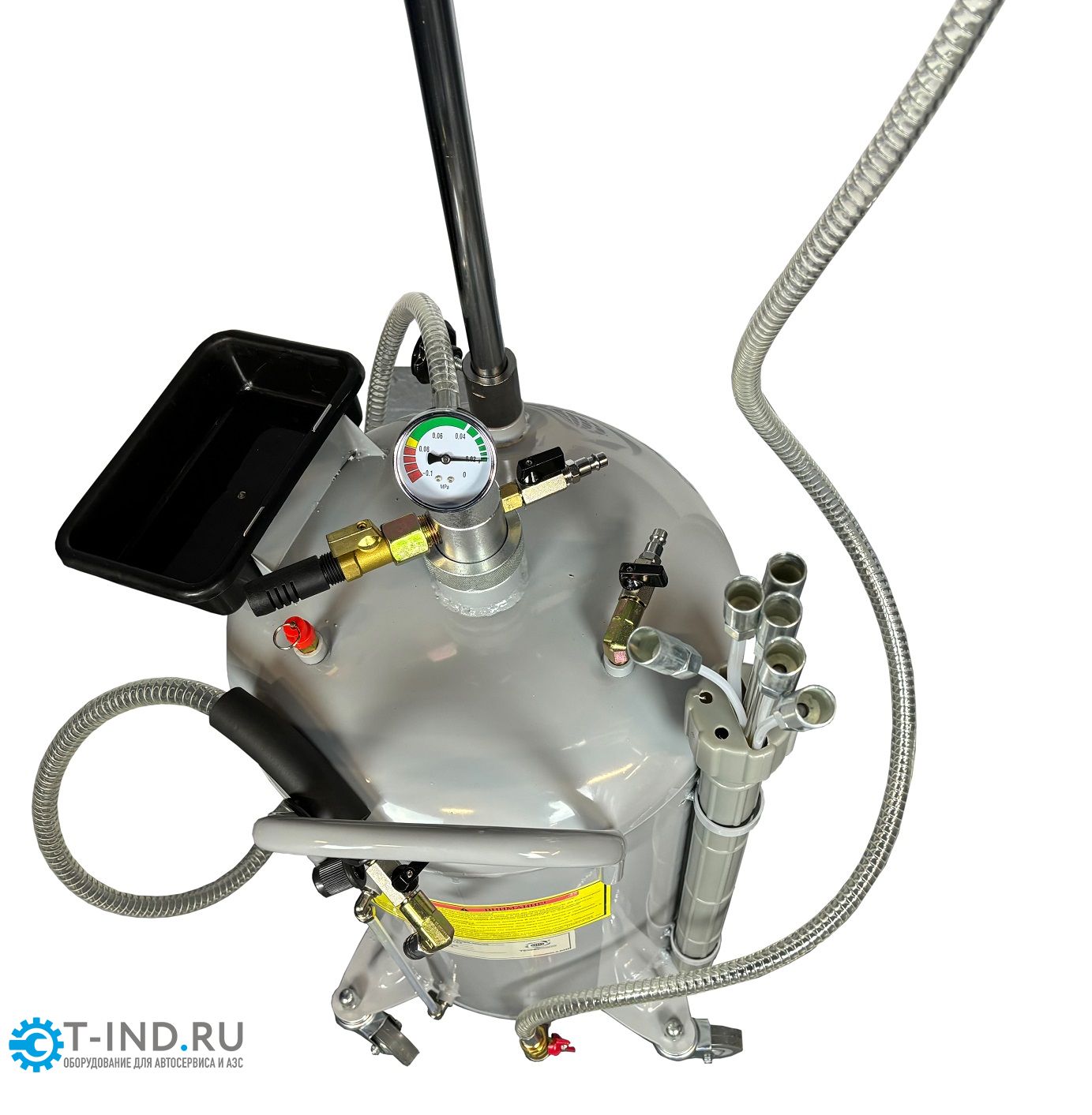 Для слива (самотеком) и откачки щупами масла и антифриза из ДВС, КПП и мостов. В комплекте: Сливная поворотная чаша с сеткой для улавливания мелких деталей. Регулировка высоты чаши с фиксацией. Щупы с металлическими наконечниками 6 шт(2 жёстких и 4 гибких разного диаметра). Лоток для инструмента и сливной пробки. Металлический пистолет с обрезиненной ручкой для откачки масла. Индикация уровня давление/разрежение в установке. Быстросъёмный штуцер для подключения к пневмолинии. Сепаратор воздушный. Вмещает 90 л. = Бак 80л + сливная воронка 10л.
