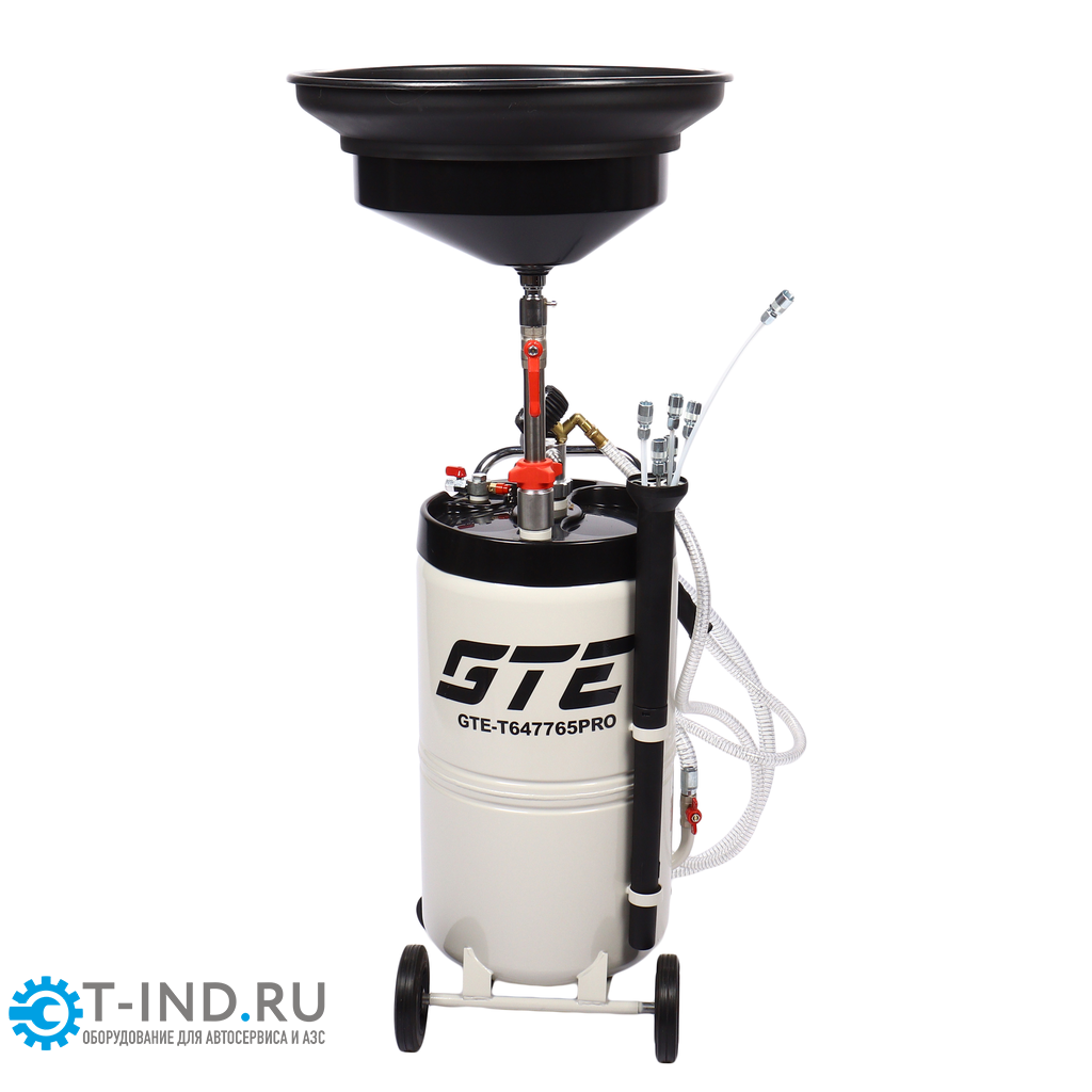 Универсальная установка для слива и откачки масла ёмкостью бака 65 литров GTE-T647765PRO. Подходит для быстрой замены моторного или трансмиссионного масла любого автомобиля.