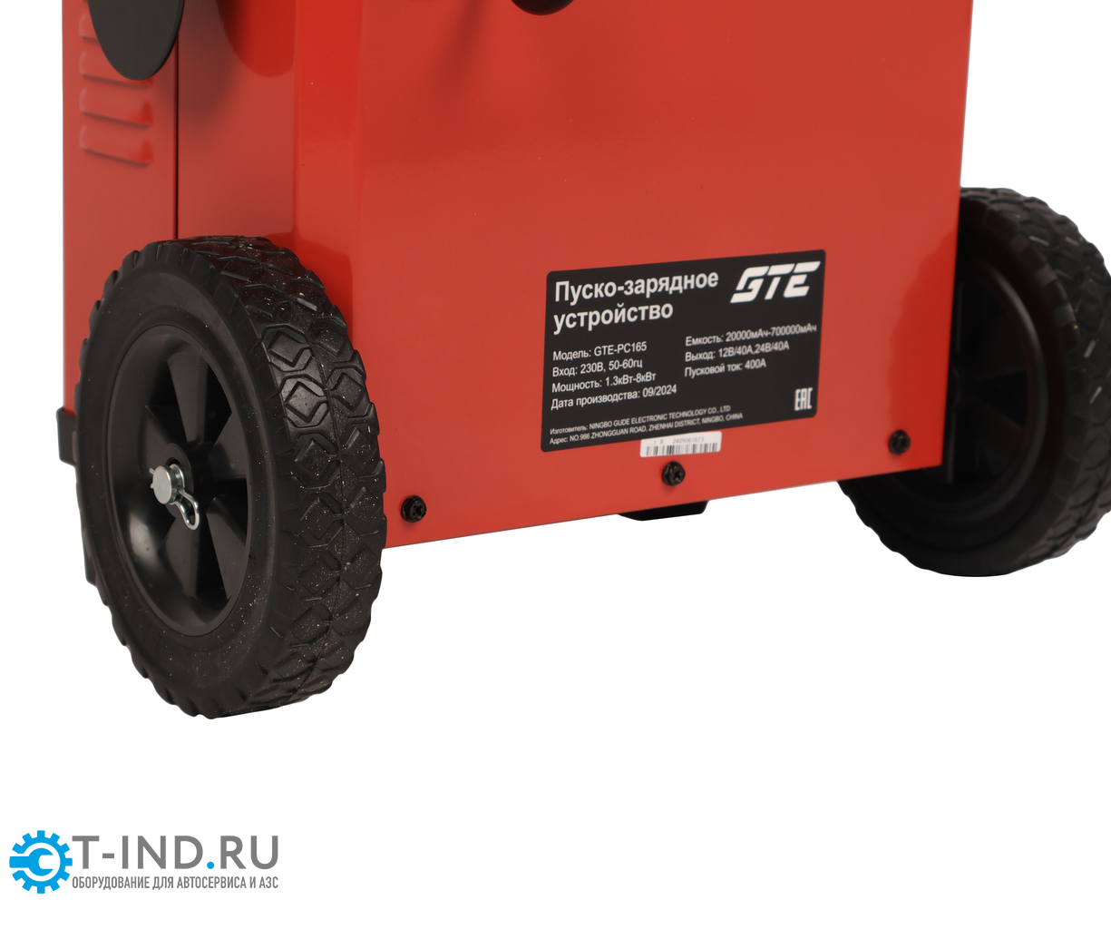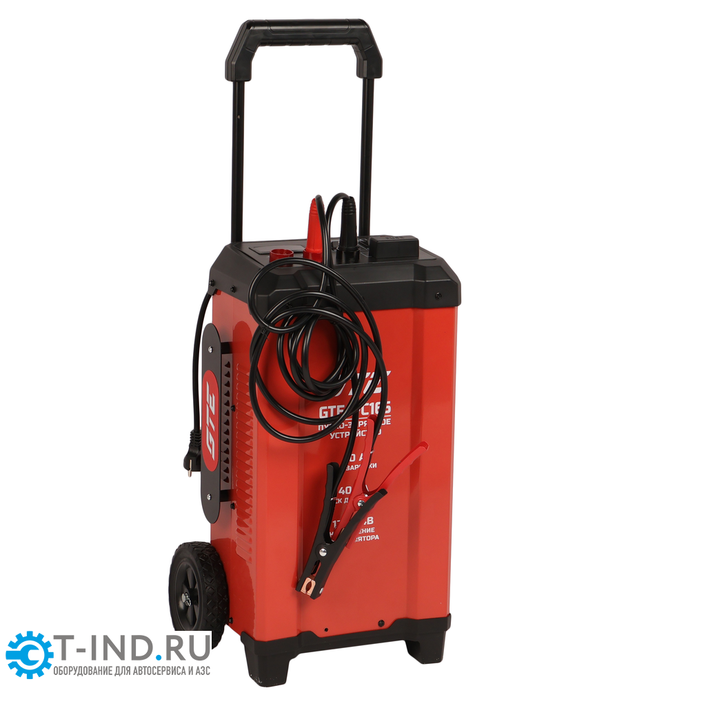 GTE-PC165 — профессиональное передвижное пуско-зарядное устройство для зарядки аккумуляторов 12/24 В и запуска двигателей с пусковым током до 400 А, предназначенное для автосервисов, СТО и работы с грузовой техникой.